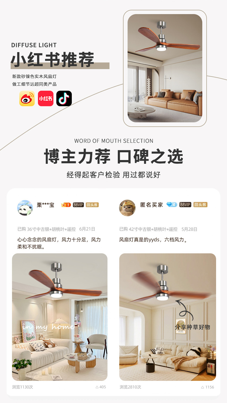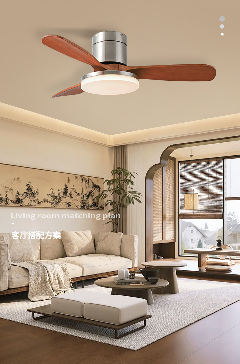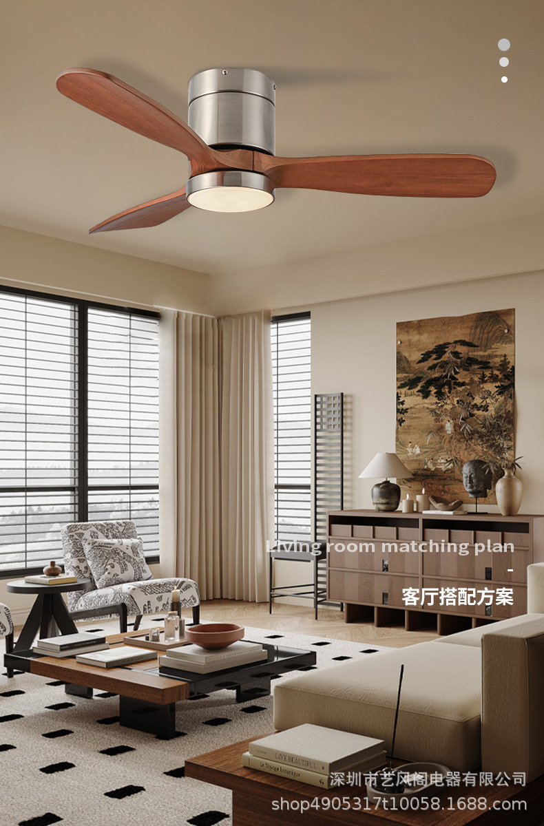 small the lamp disc-52-inch sand nickel color + walnut fan blade +20w three-color light + remote control