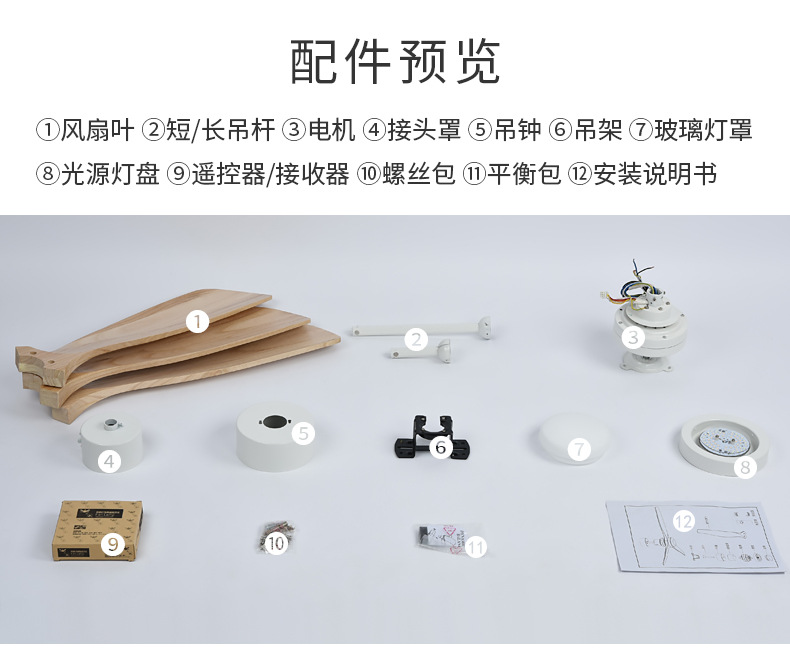 small the lamp disc 42-inch white + log fan blade +20w three-color light + remote control