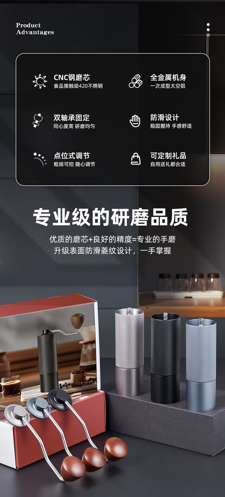 trumpet medium and external tone coffee grinder-black-five stars