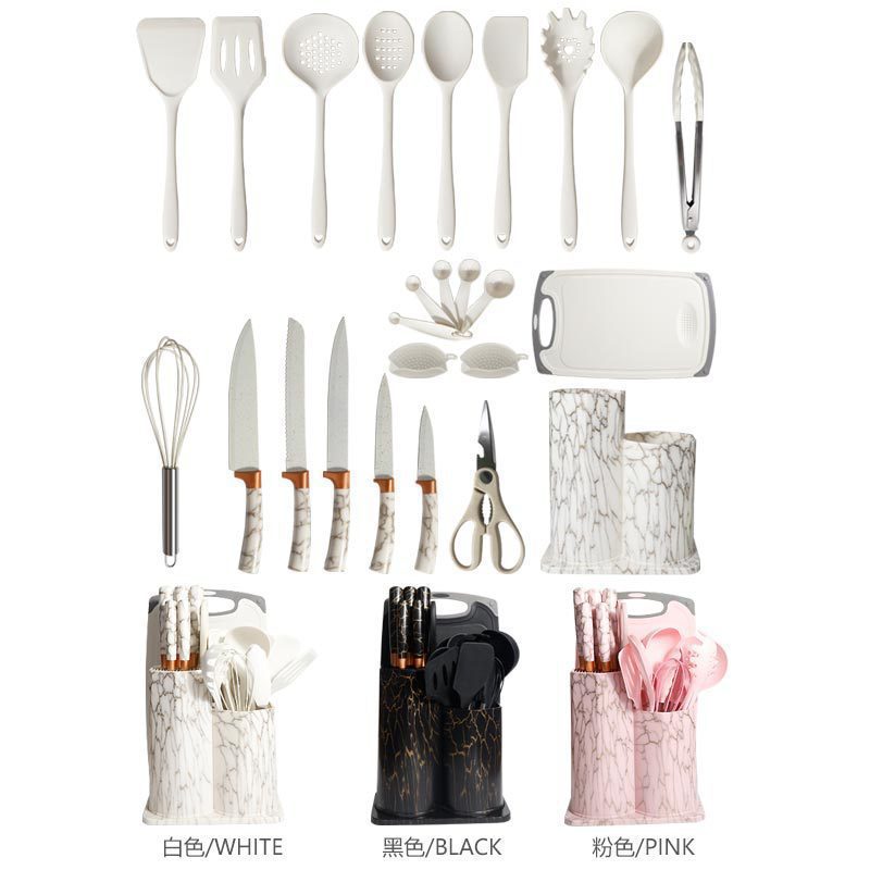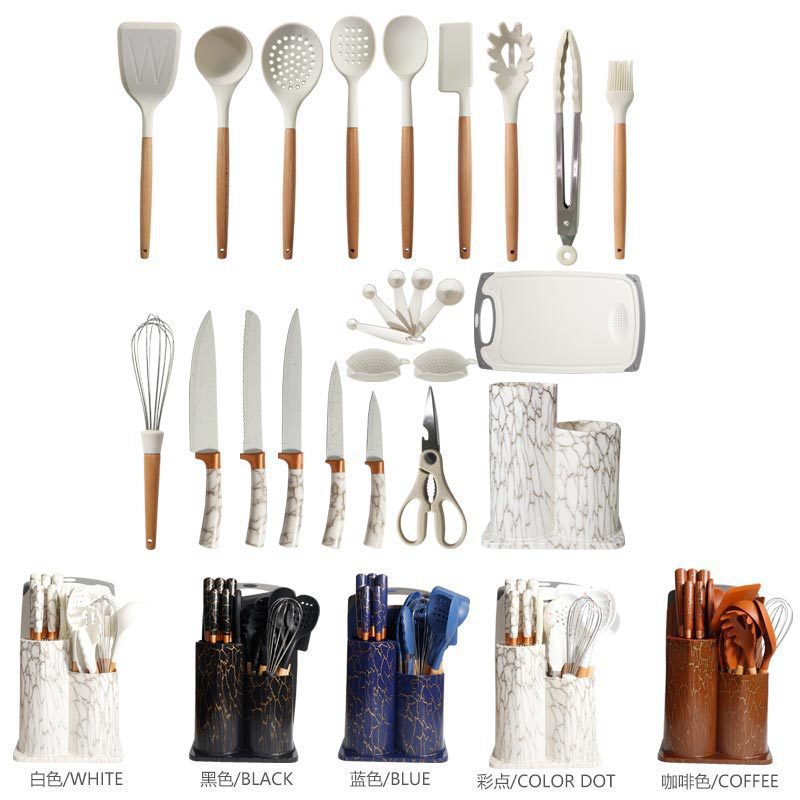 25-piece silicone kitchenware set spatula and soup spoon cutters & scissors non-stick pan high temperature resistant kitchen supplies set wholesale