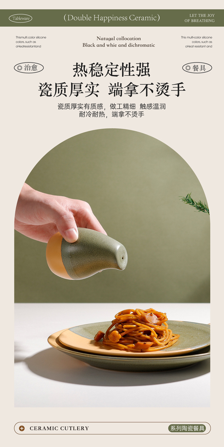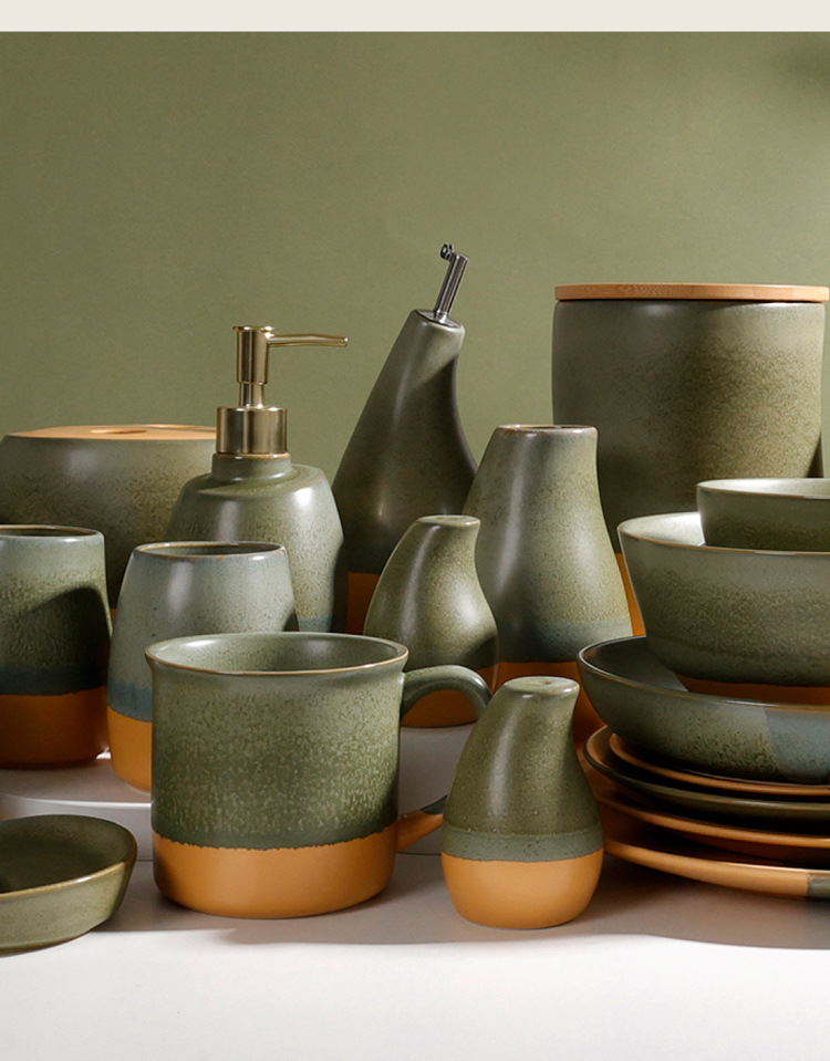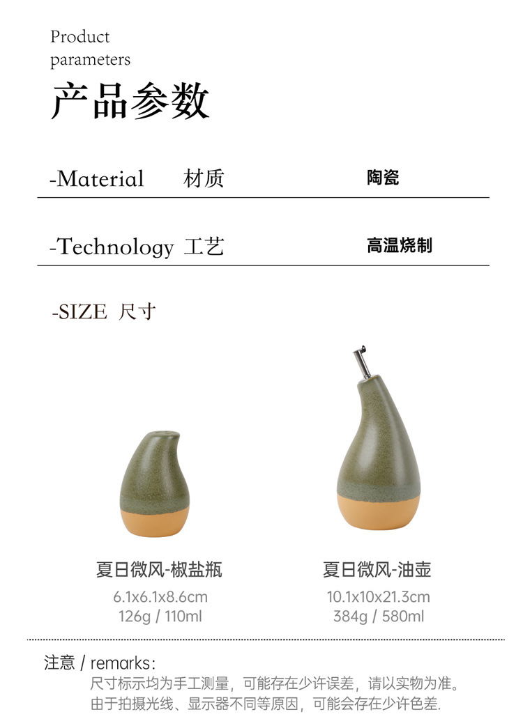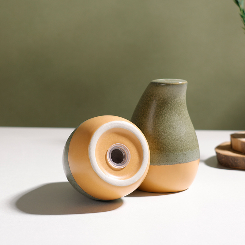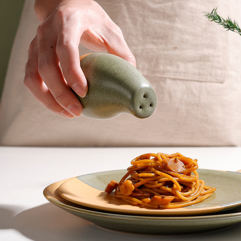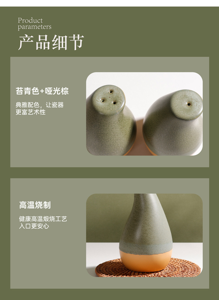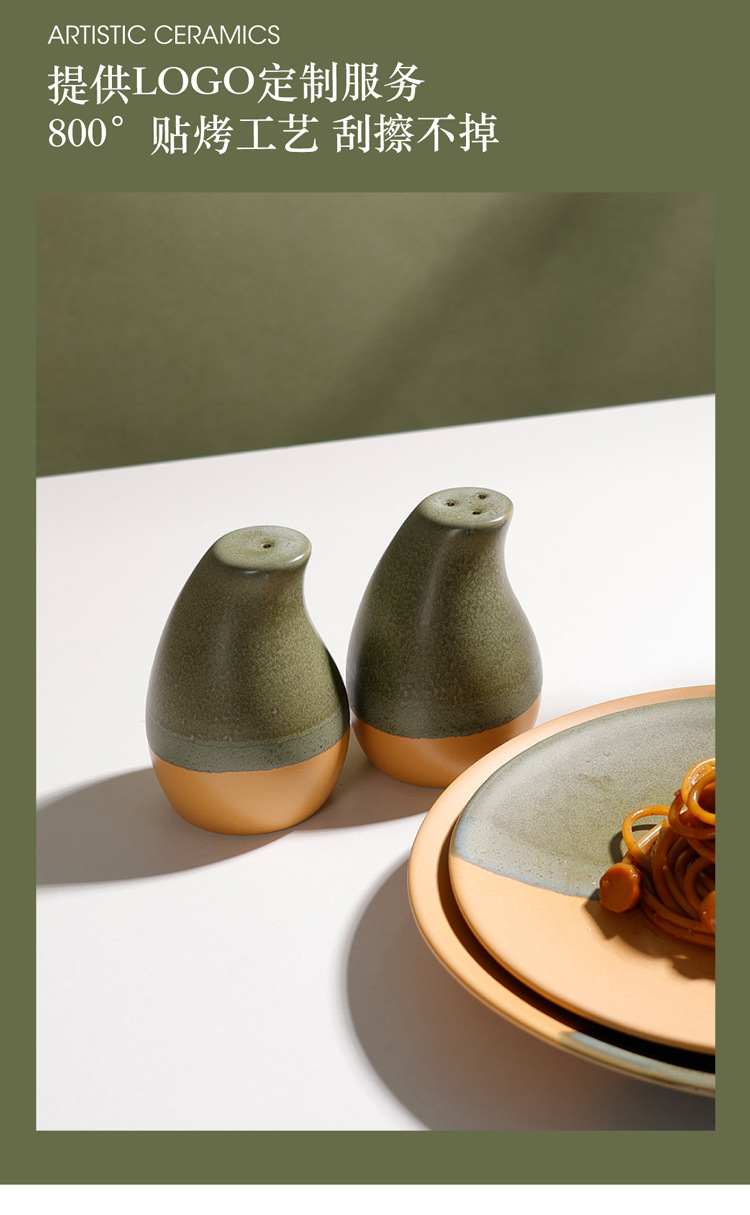 summer breeze 3-hole colored glaze salt and pepper shaker (moss green + matte brown)