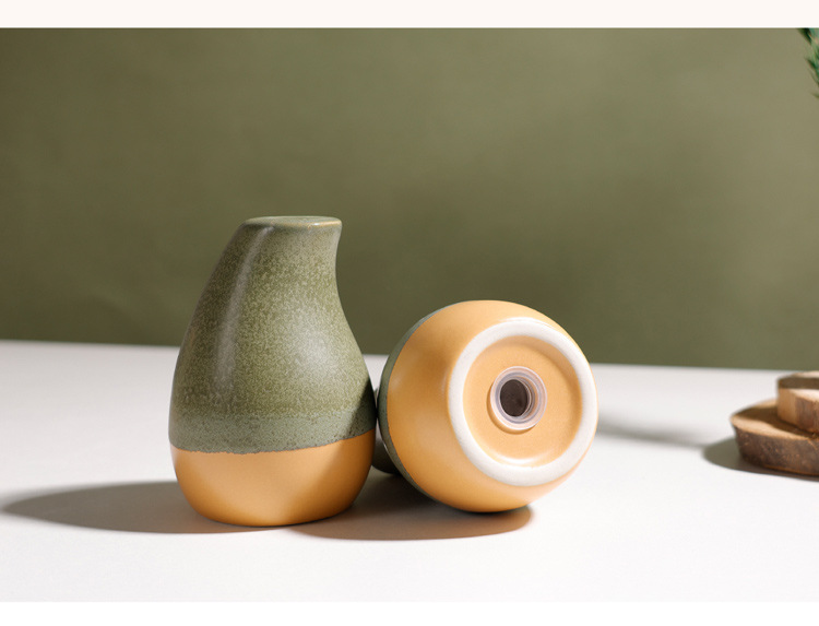 summer breeze 1 hole colored glaze salt and pepper shaker (moss green + matte brown)
