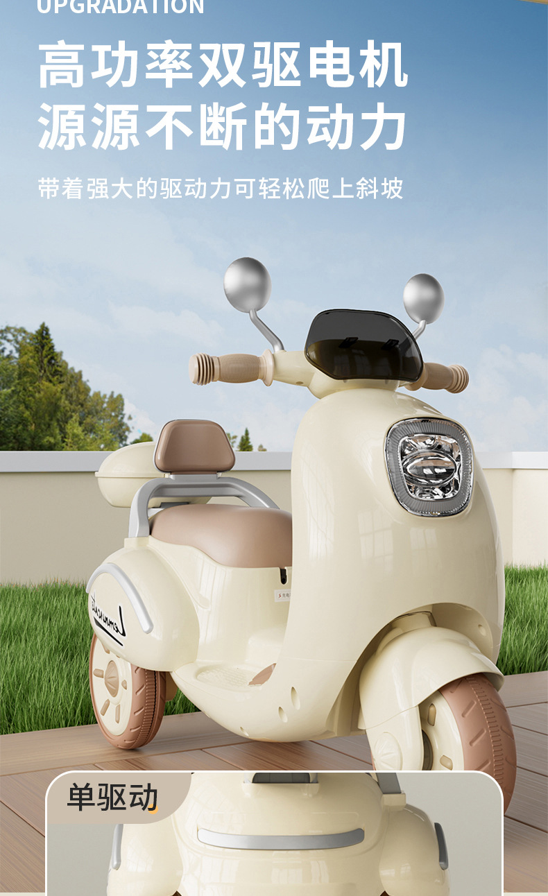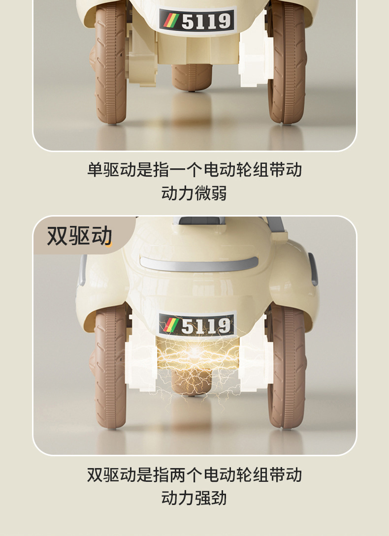 jq-5119 cream and coffee-colored 6 v7 battery dual drive + remote control