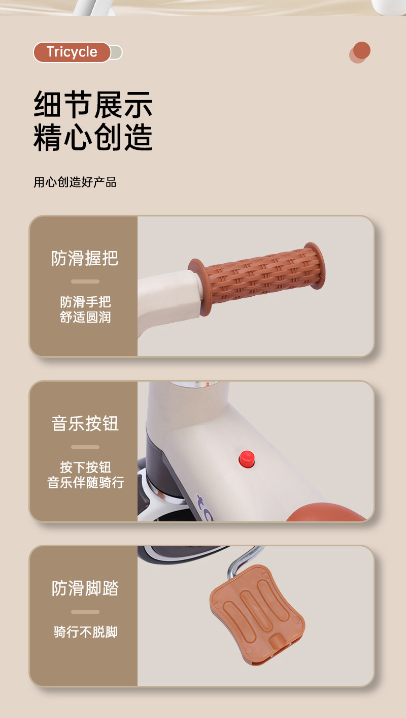 fw699-6 dark gray tricycle + push handle