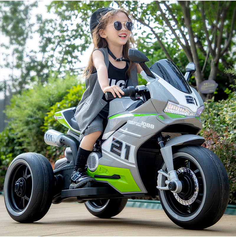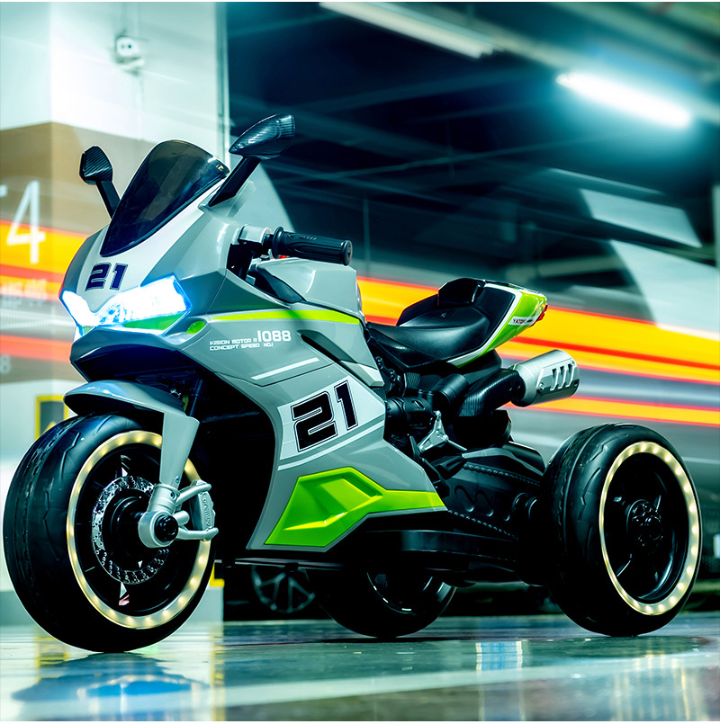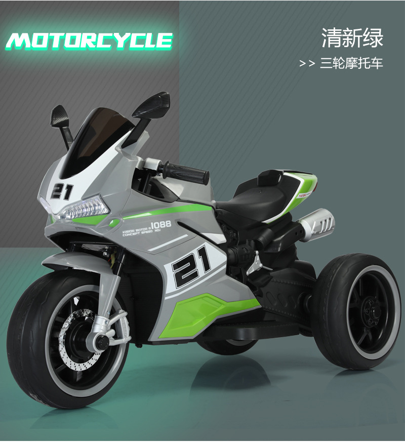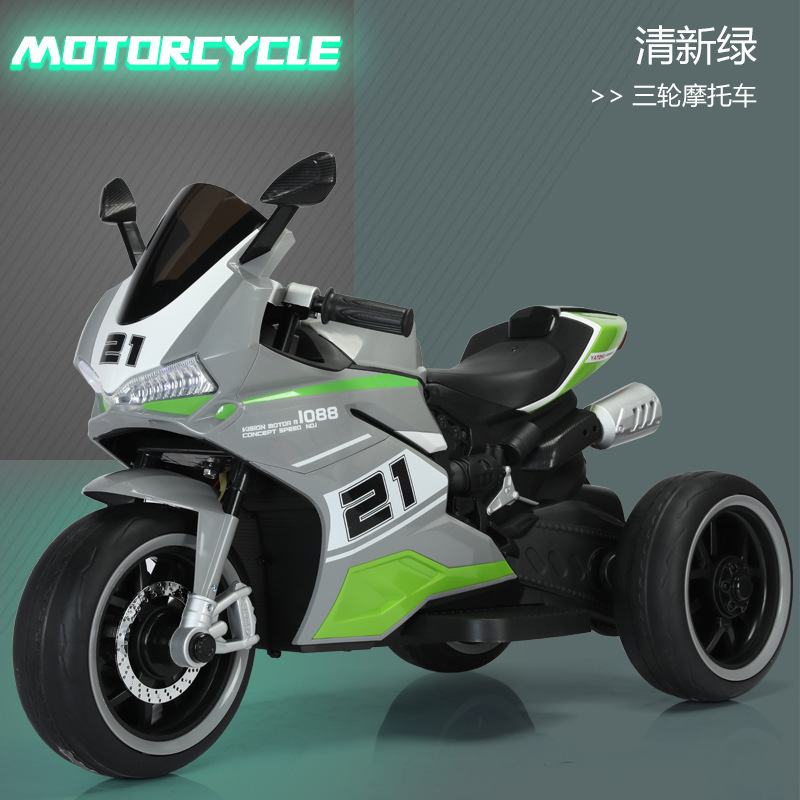 yt-1088 three-wheeled motorcycle gray +12.7 battery +390 motor * 2 + light-emitting wheel + hand twist throttle + leather seat