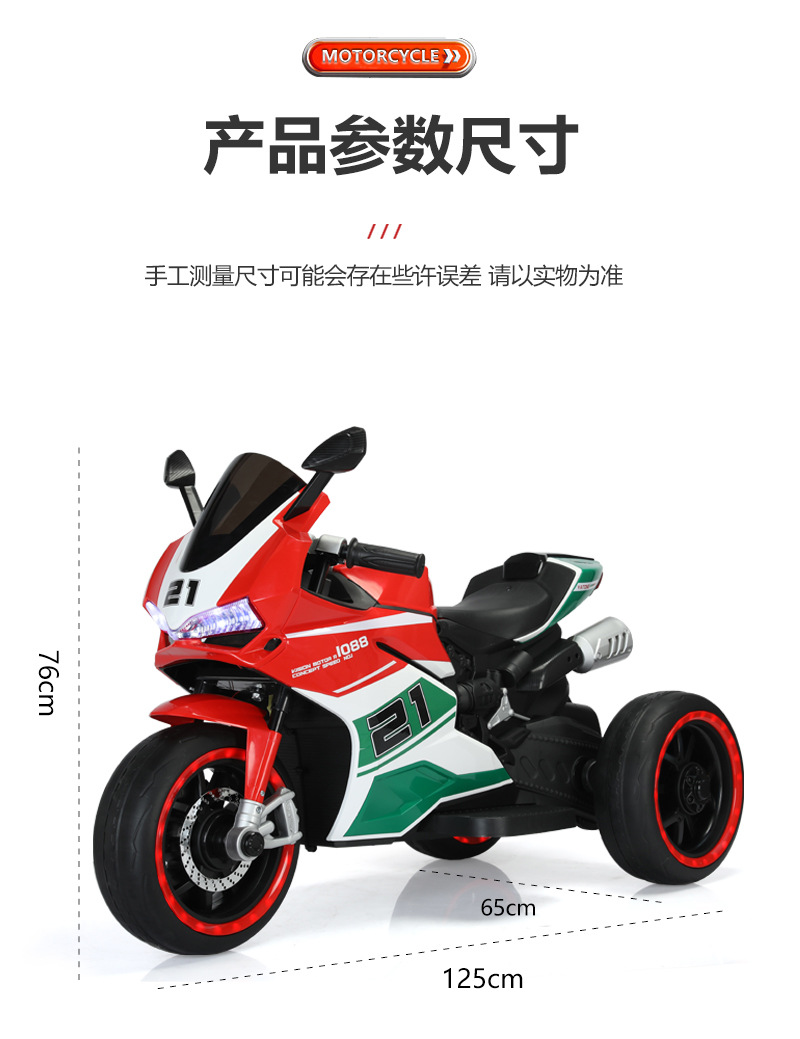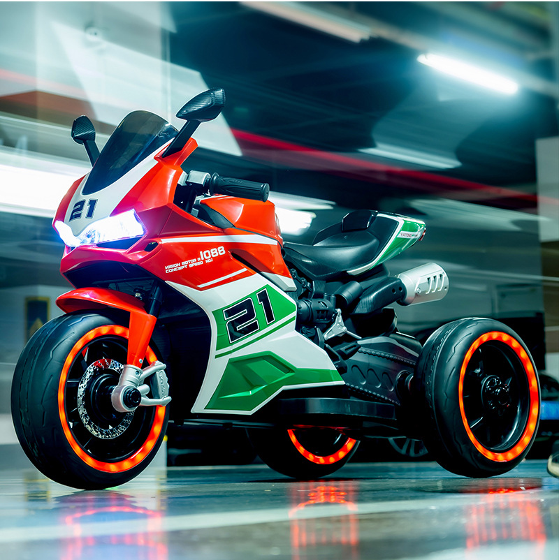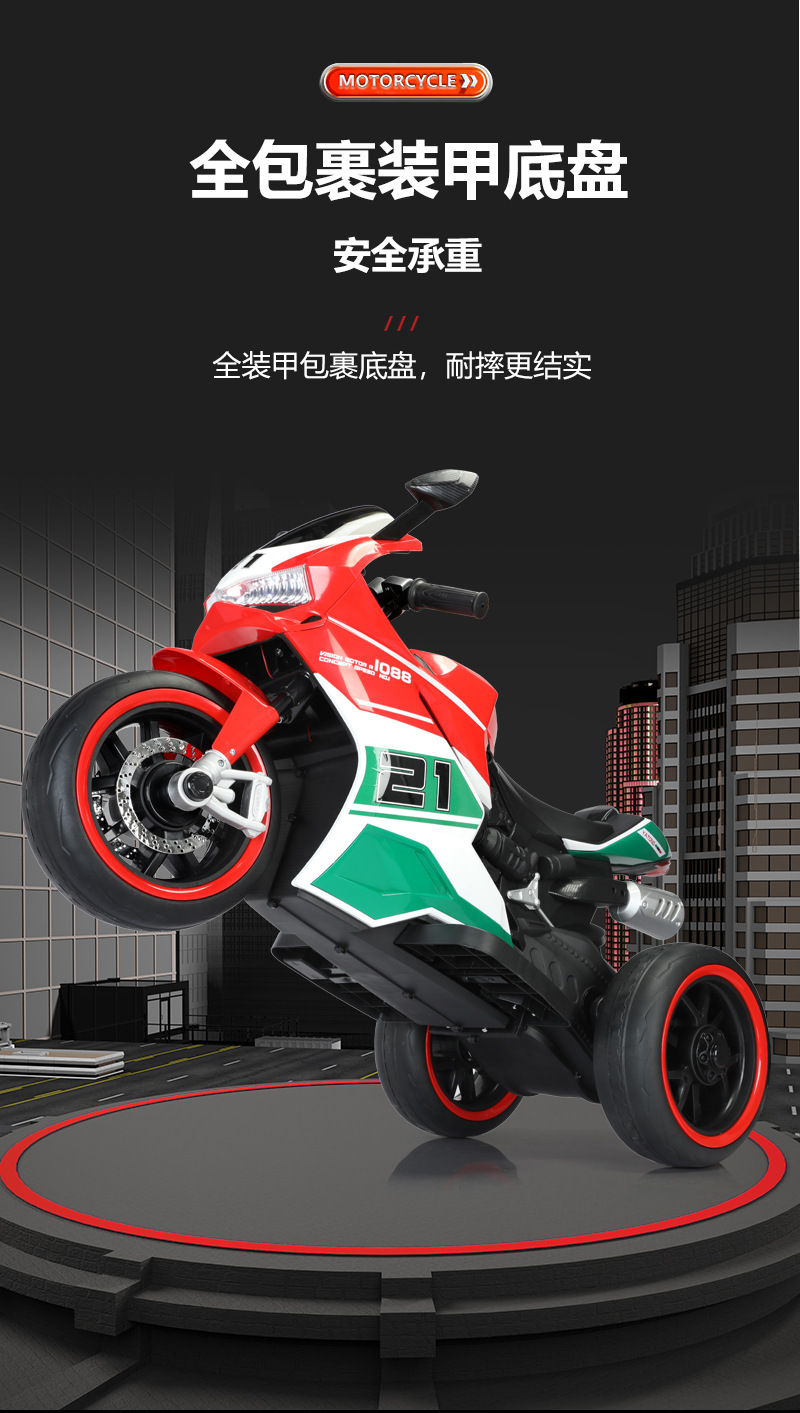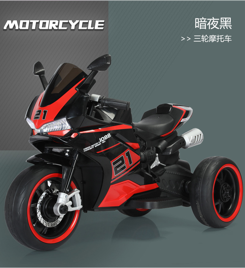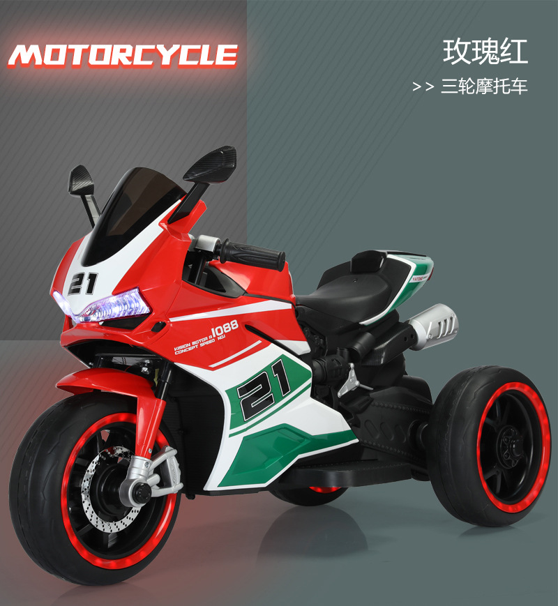 yt-1088 three-wheeled motorcycle red +12.7 battery +390 motor * 2 + light-emitting wheel + hand twist throttle + leather seat