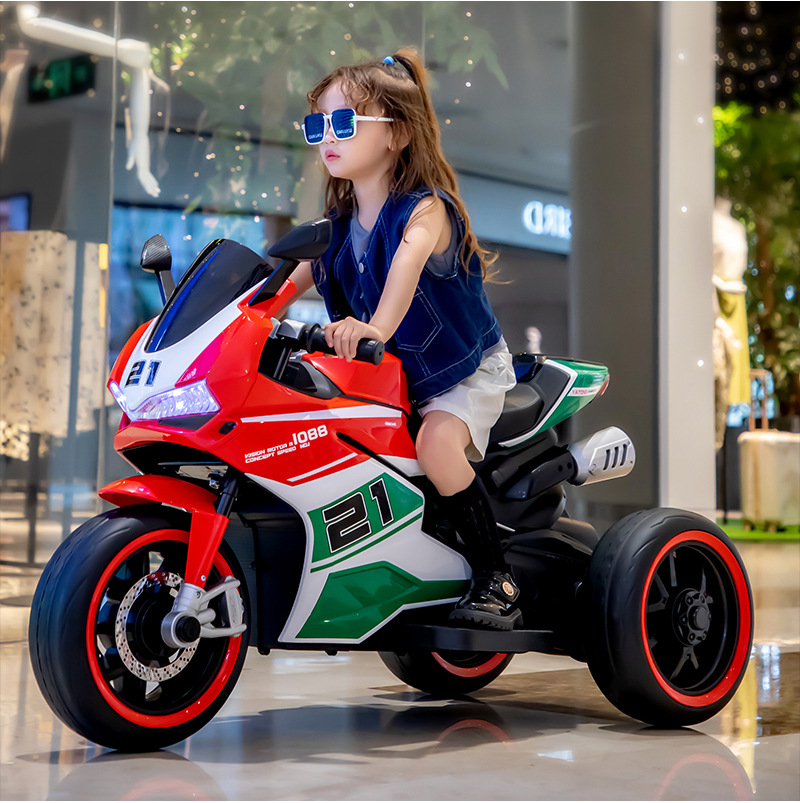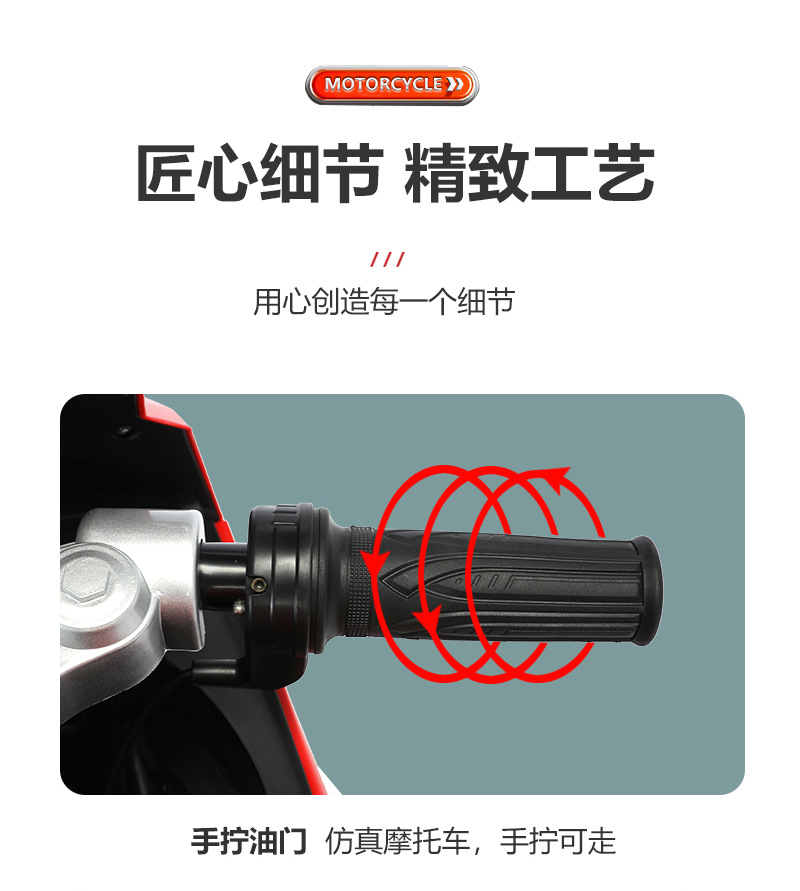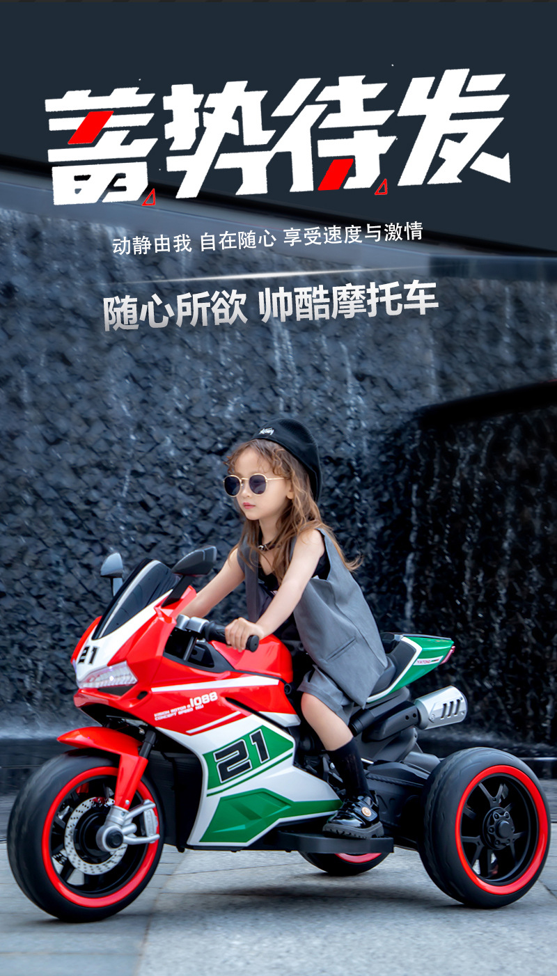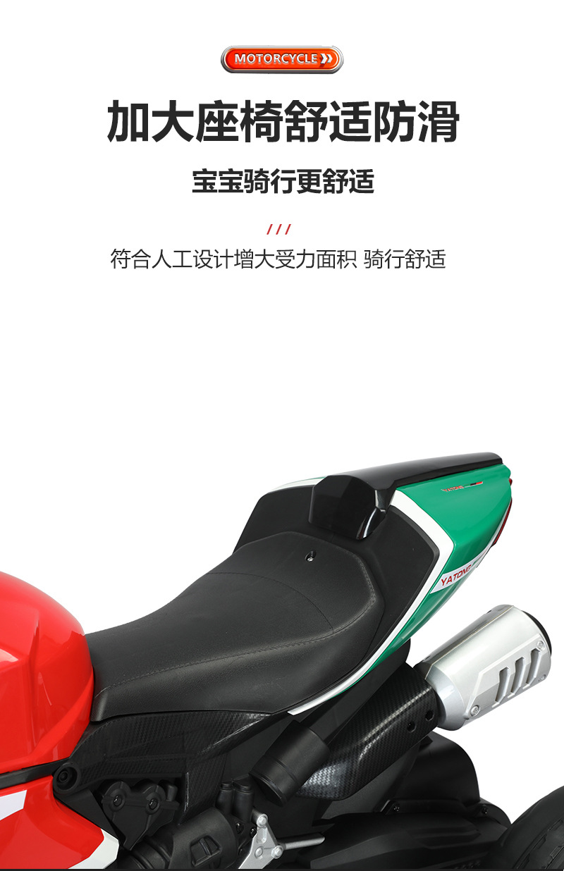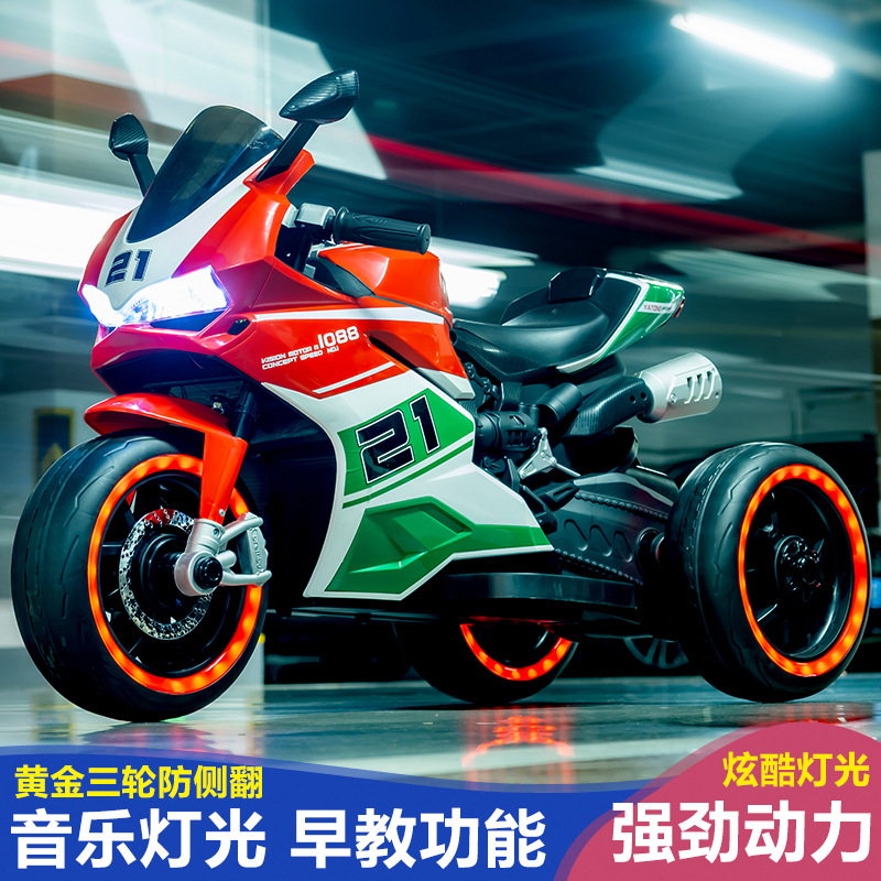 yt-1088 three-wheeled motorcycle red +12.7 battery +390 motor * 2 + light-emitting wheel + hand twist throttle + leather seat