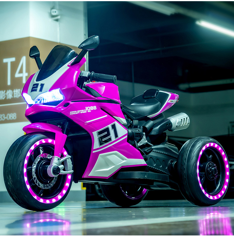 yt-1088 three-wheeled motorcycle pink +12.45 battery +390 motor * 2 + light-emitting wheel + hand twist throttle