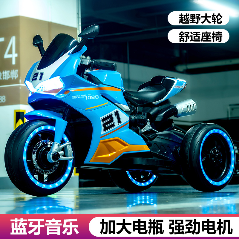 yt-1088 three-wheeled motorcycle blue +12.45 battery +390 motor * 2 + light-emitting wheel + hand twist throttle