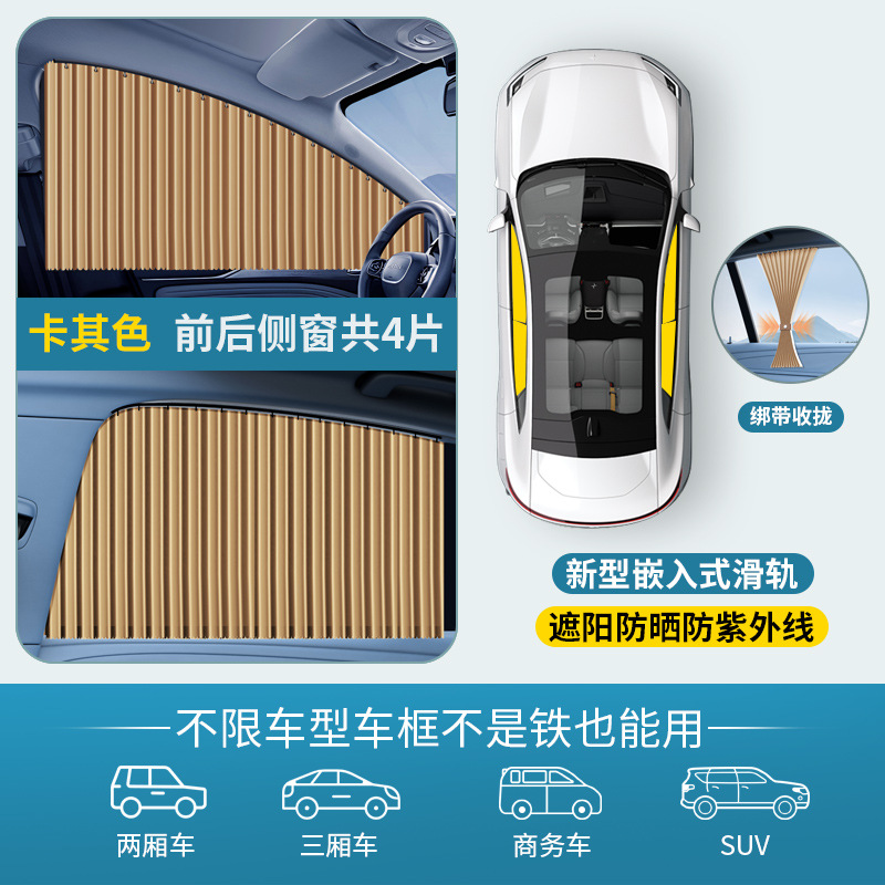 [lace-up style] embedded track curtain khaki all-car four-piece set