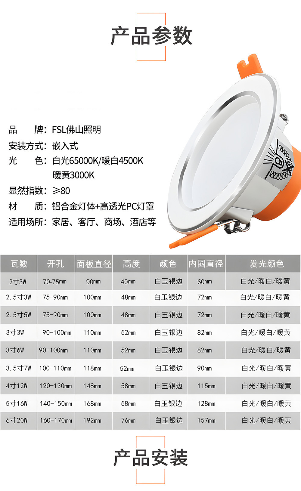 3.5-inch 7w hole 100-110mm4000k warm white [white jade silver edge]]