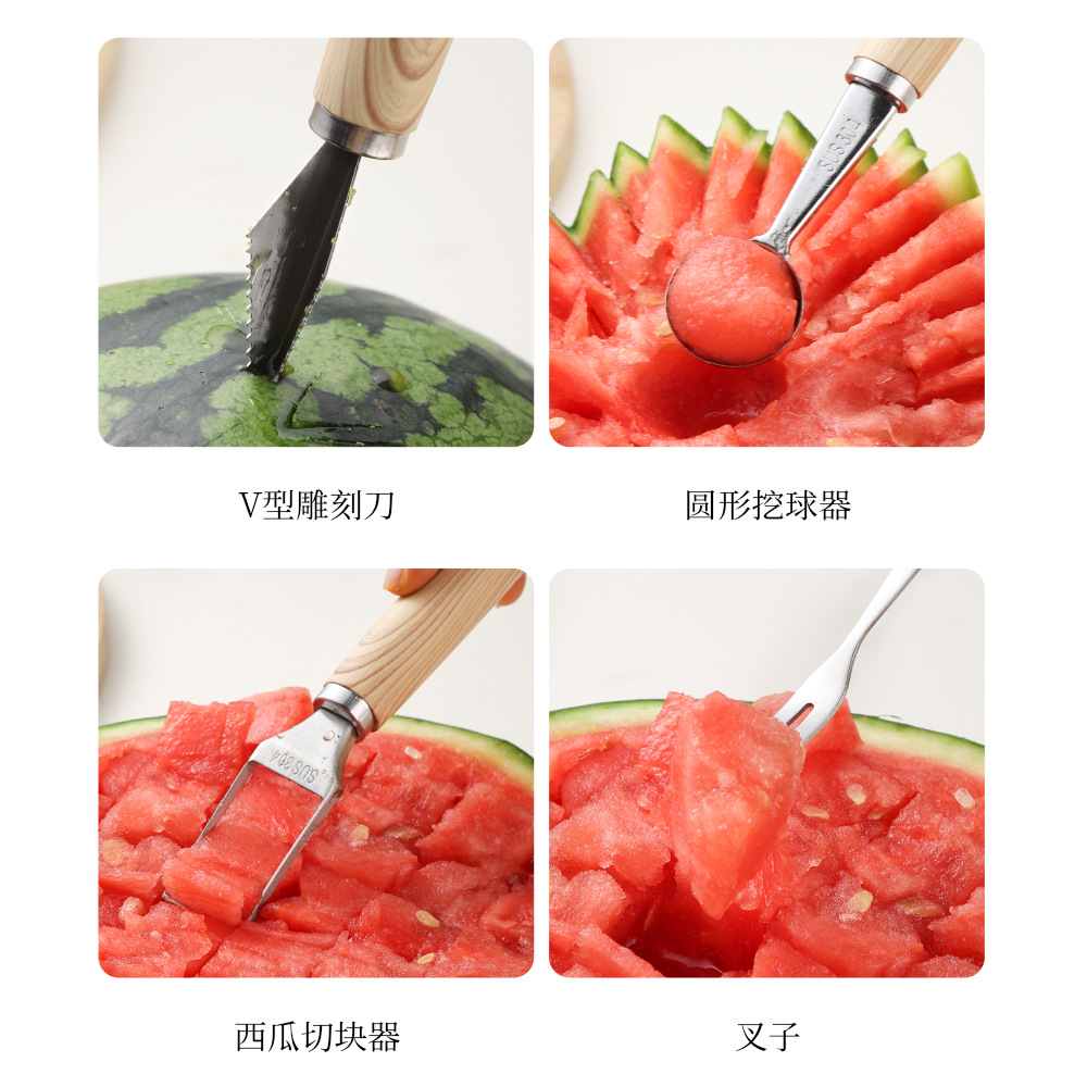 small size round melon baller + carving knife