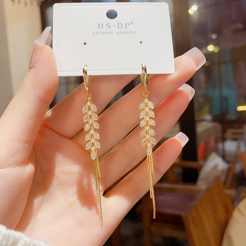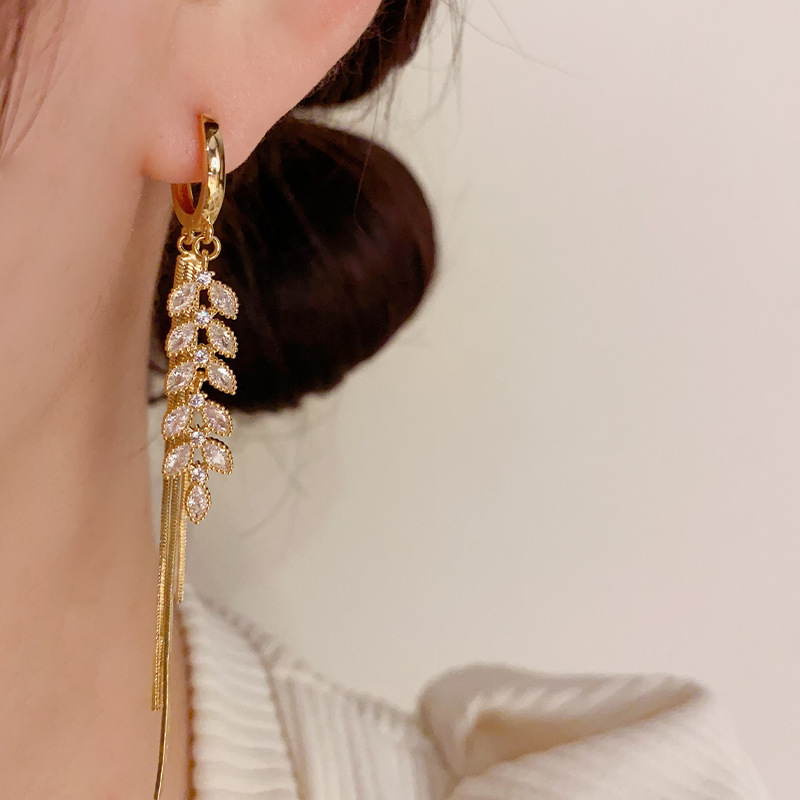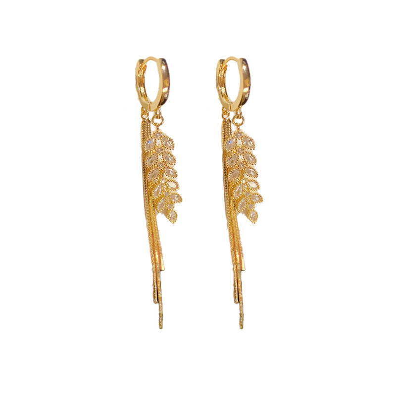 zircon wheat tassel ear clip (thick real gold plating)