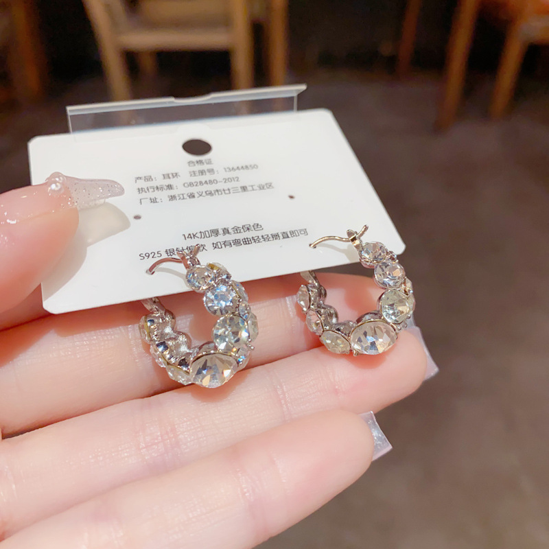 full diamond silver circle ear clip (thick real gold plating)