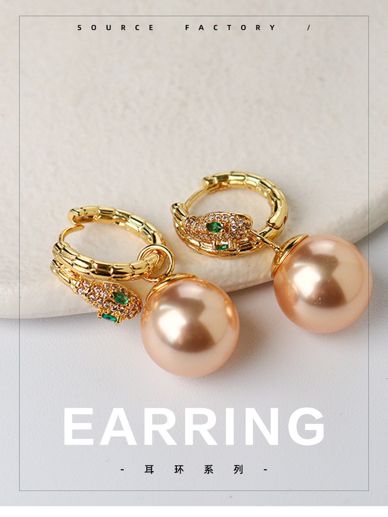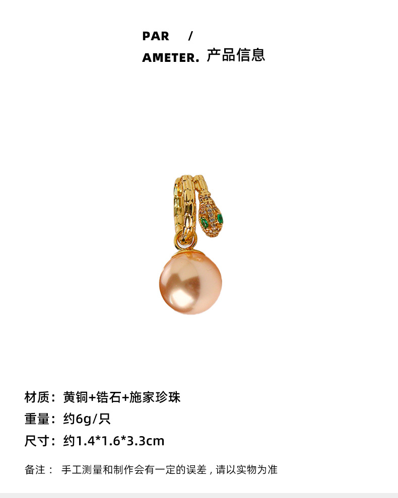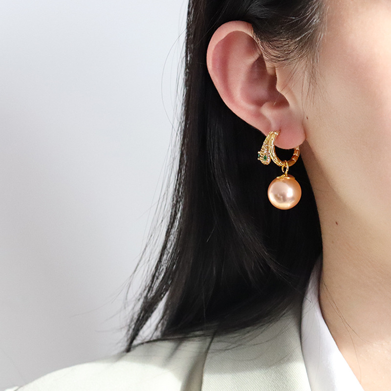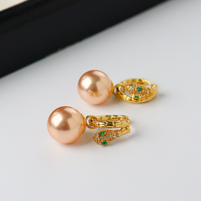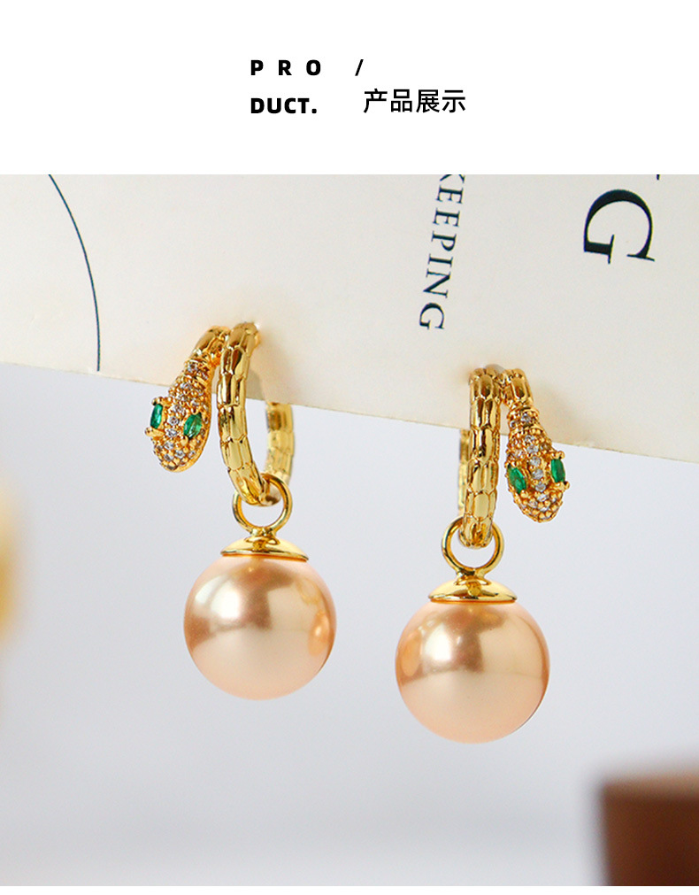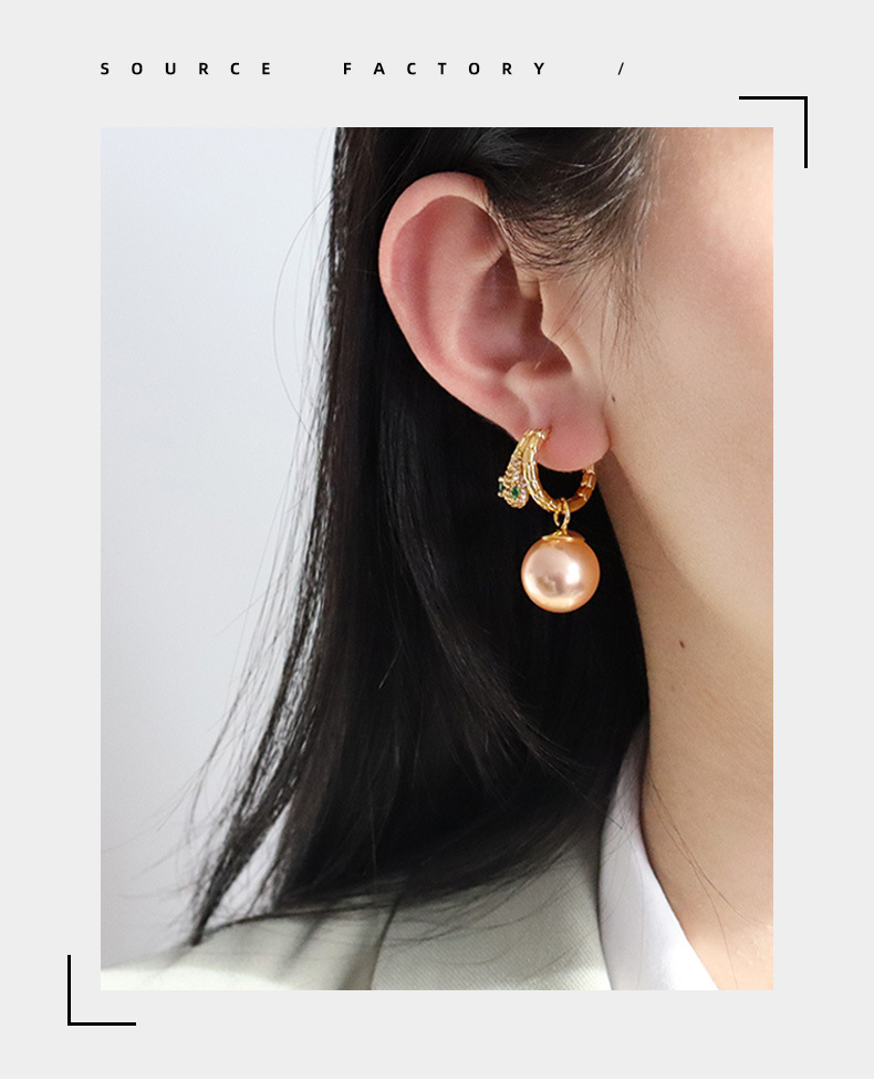 fashionable and exquisite snake year shijia pearl earring ear clip temperament wild birth year spring and summer earrings light luxury high sense
