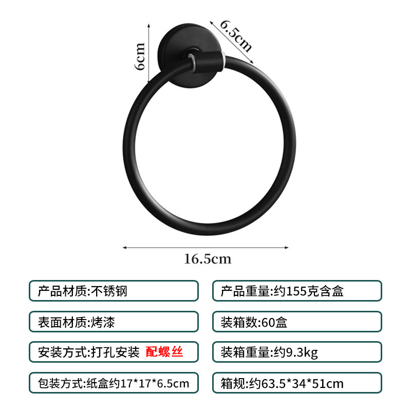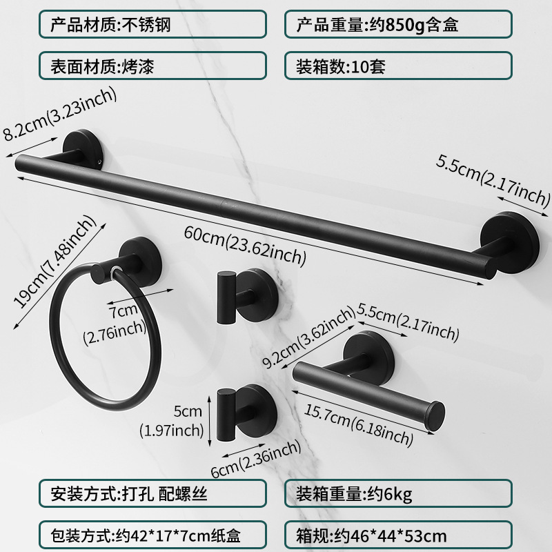 [cross-border 60cm] punch-towel bar middle section detachable five-piece set-elegant black