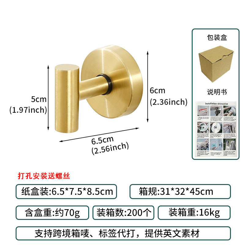 [cross-border 60cm] punch-towel bar middle section detachable five-piece set-gold