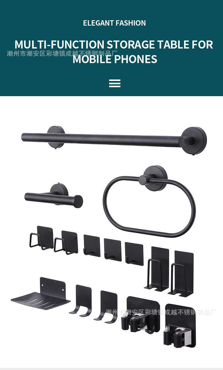 towel ring-7 piece set = black
