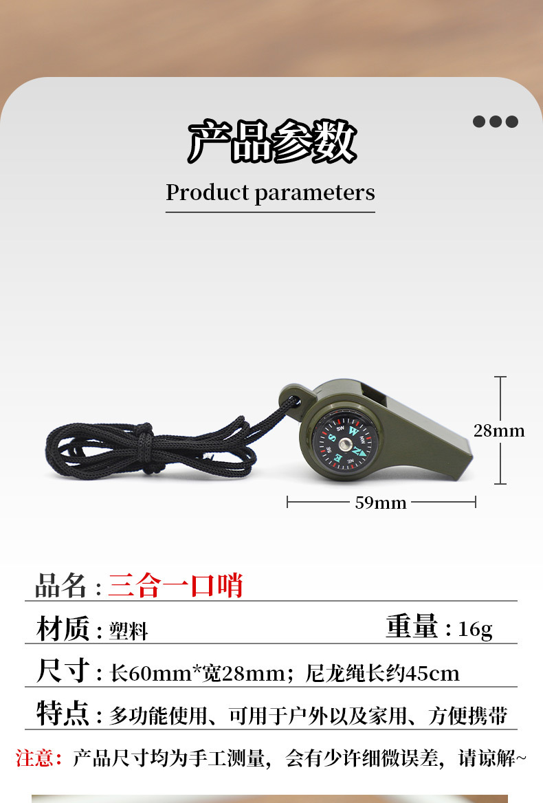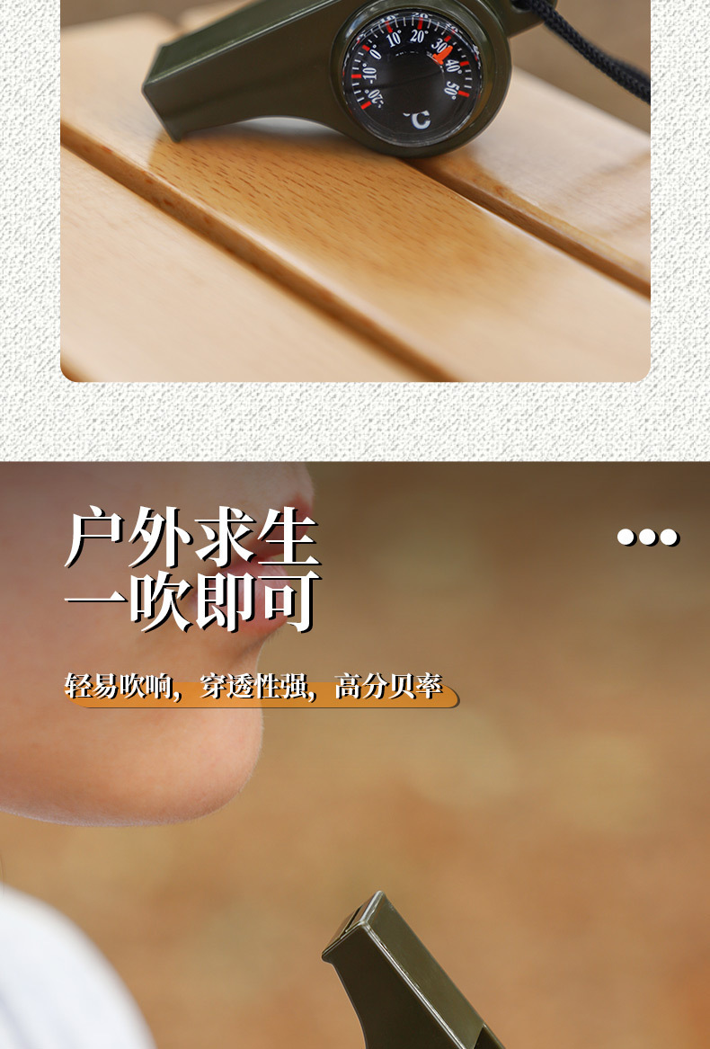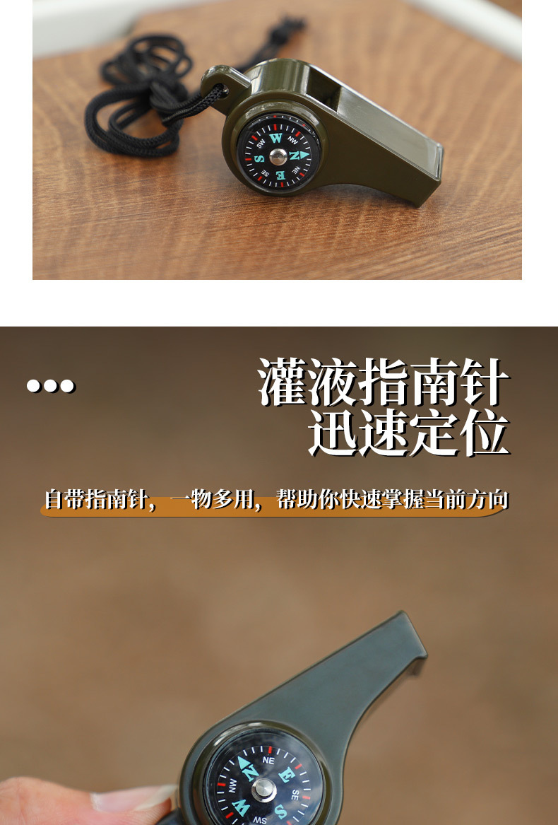 army green three-in-one whistle