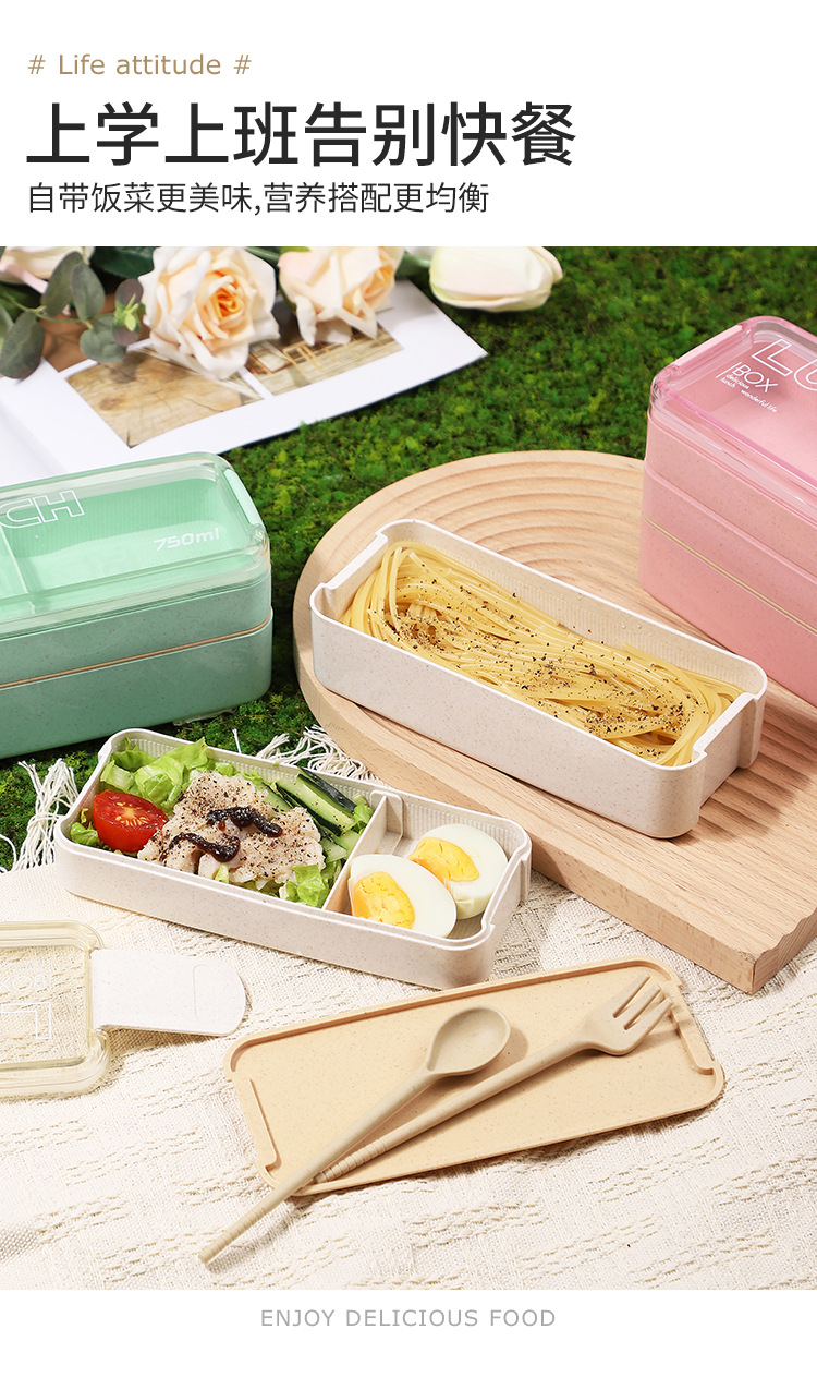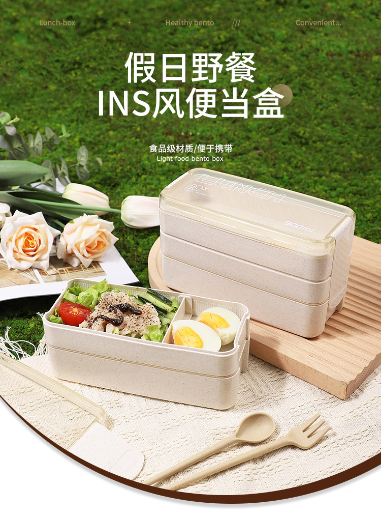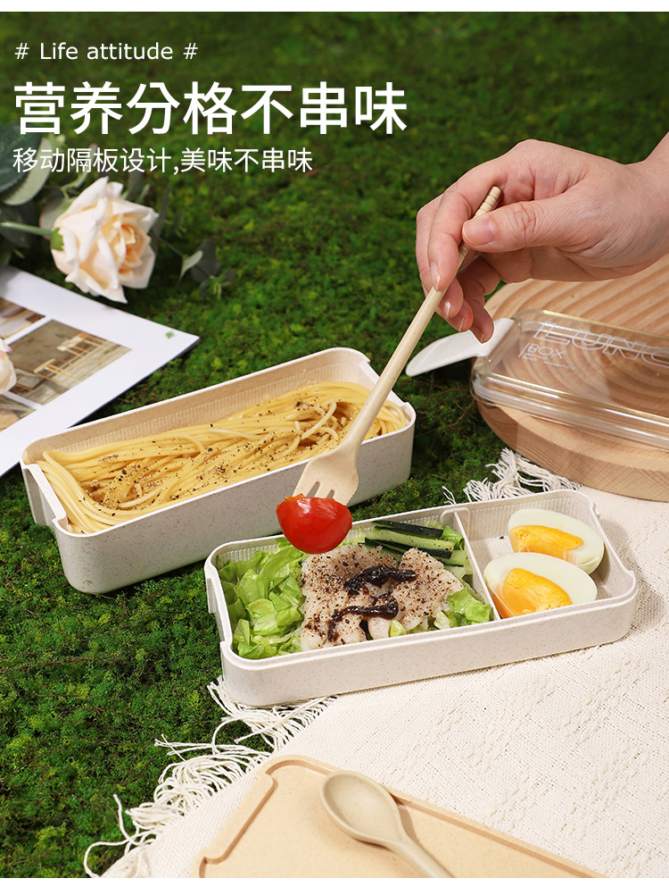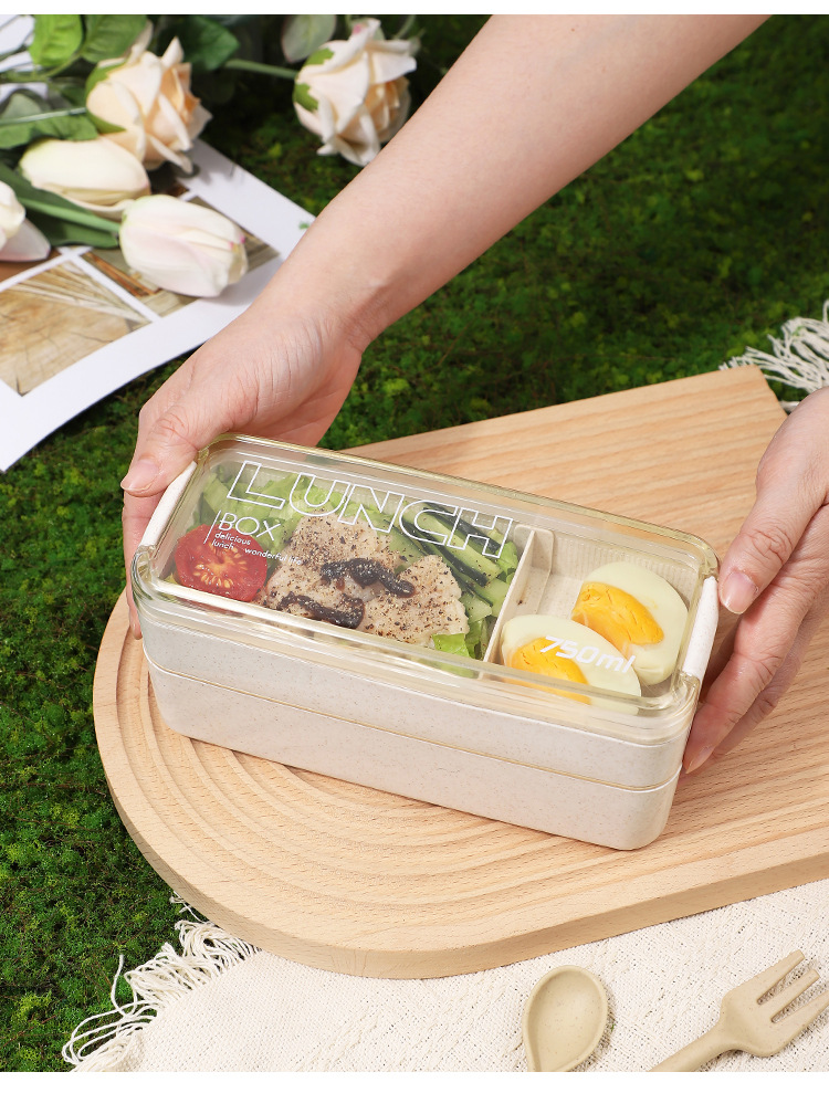 wheat straw lunch box bento box picnic box double rounds tableware microwaveable heating student office worker outdoor