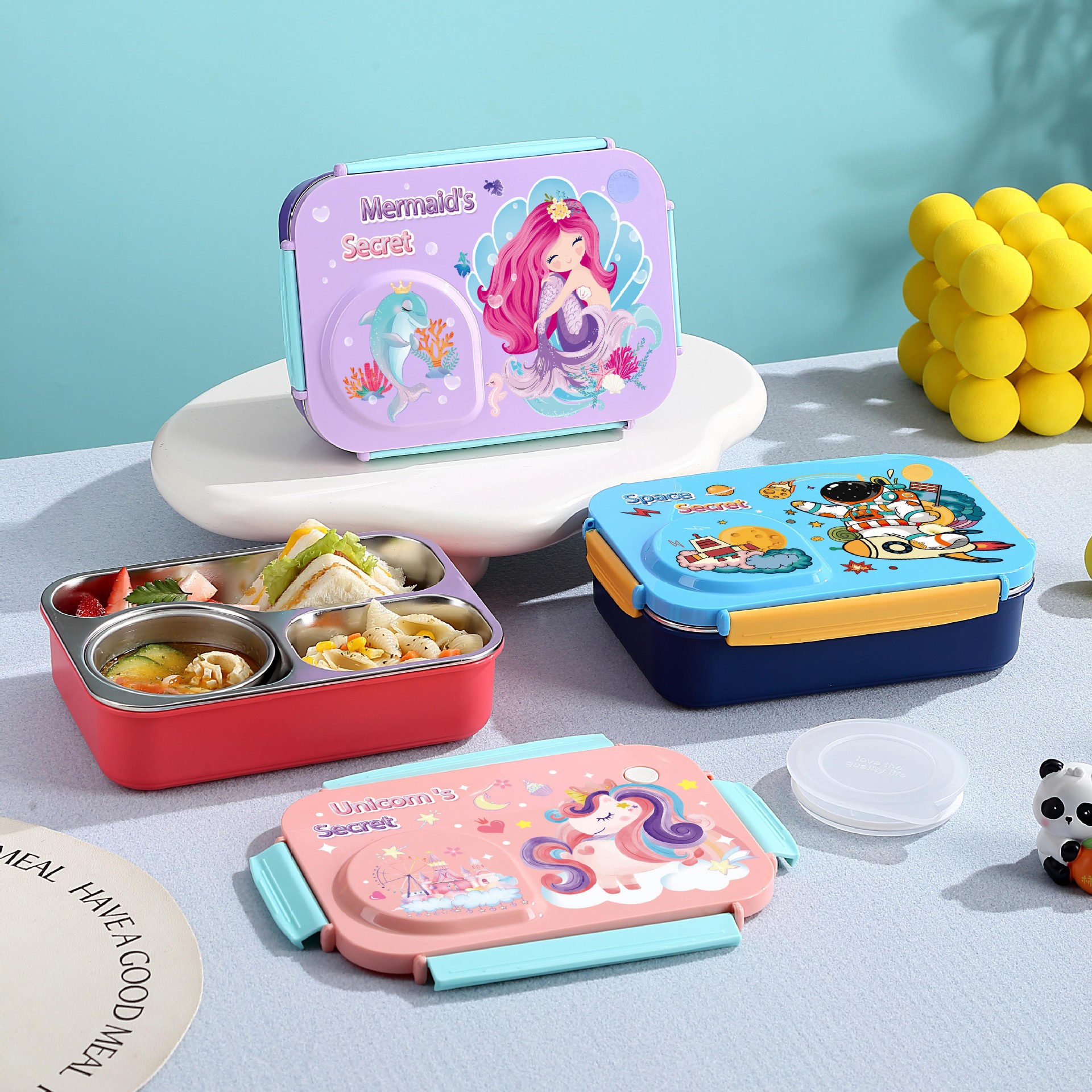 Product Name: Yajiali 3D Cartoon Non-Sticky Lunch Box (Stainless Steel 4-Compartment 900ml + Plastic Bowl 150ml + Stainless Steel Utensils)