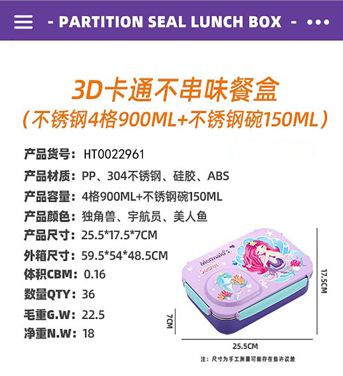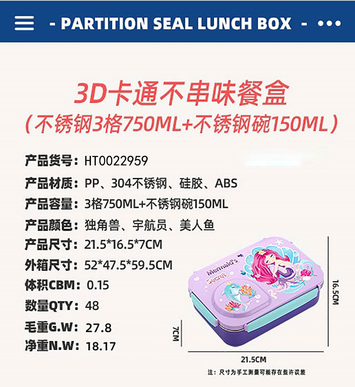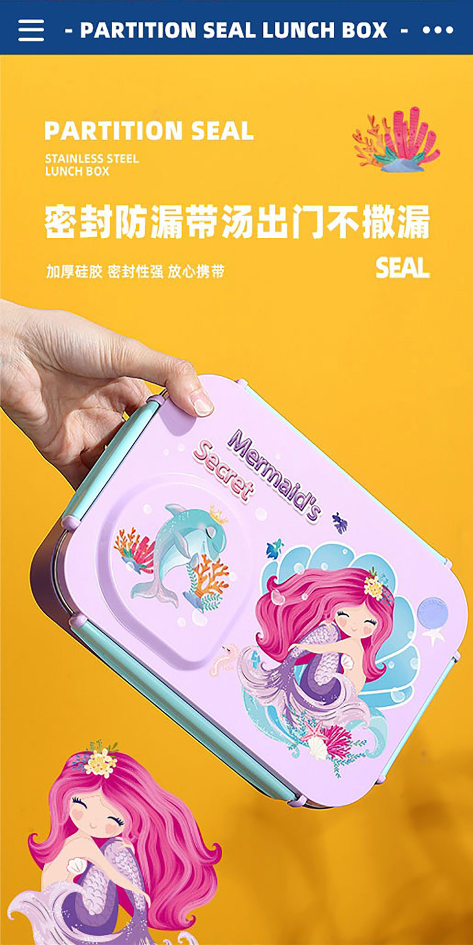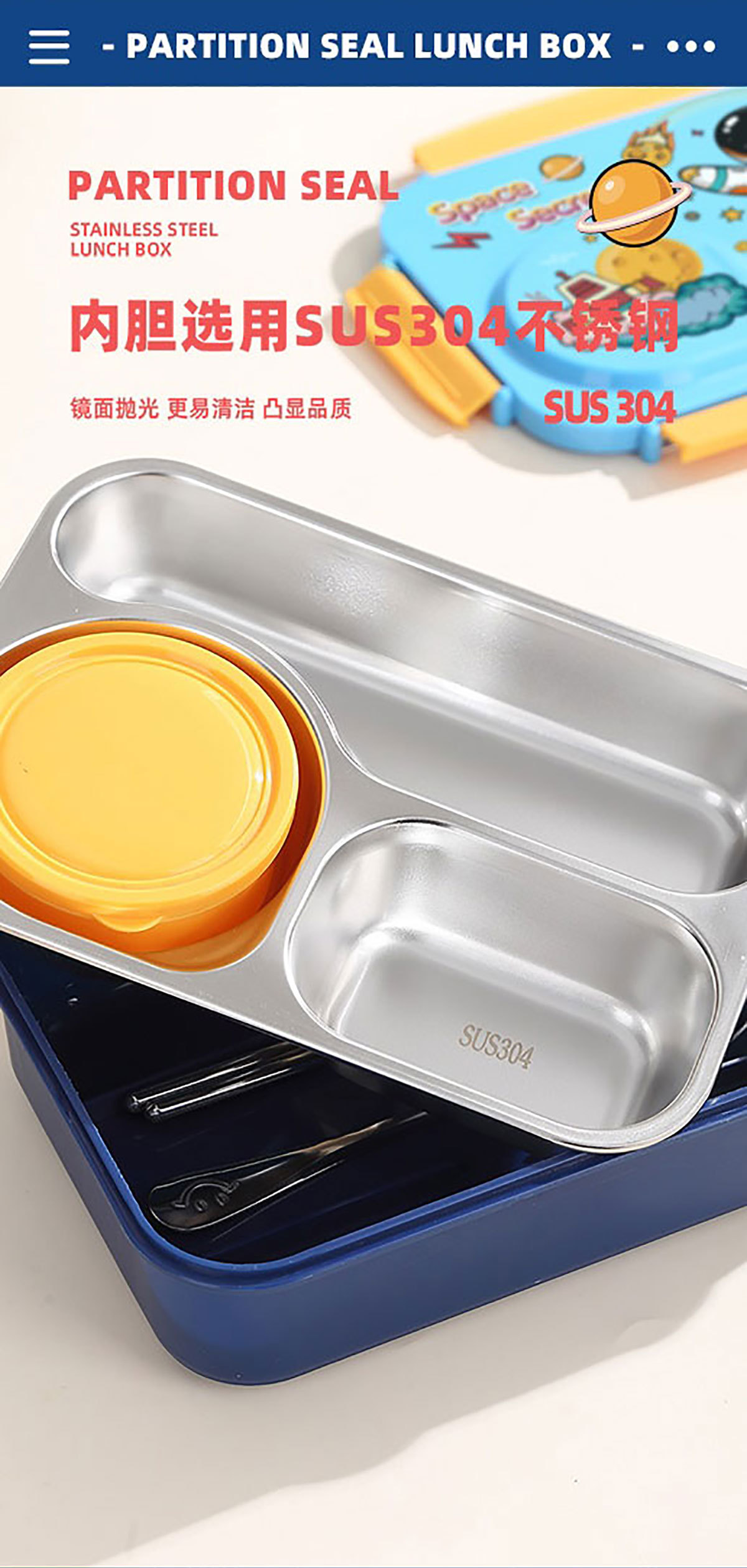 Product Name: Yajiali 3D Cartoon Non-Sticky Lunch Box (3-Compartment Stainless Steel 750ml + Plastic Bowl 150ml + Stainless Steel Utensils)