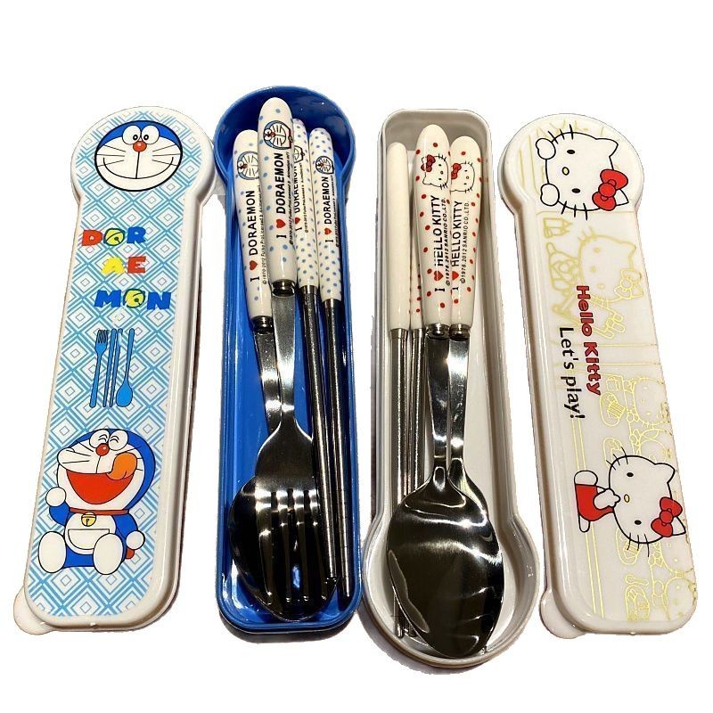 cute cartoon stainless steel kt pokonyan chopsticks spoon fork four-piece set office worker portable travel tableware