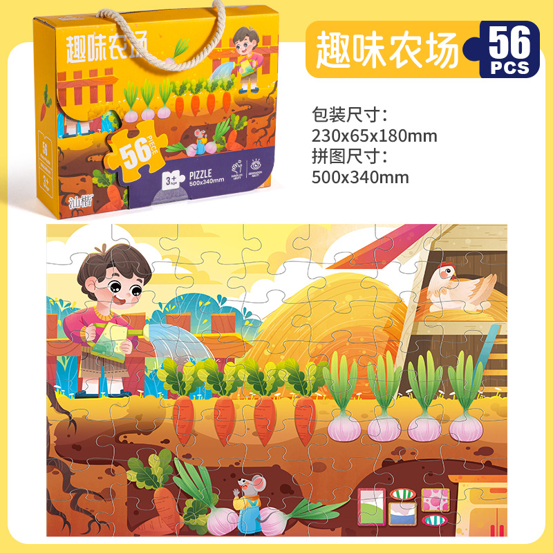 Packed in a gift box, the beautiful hand-held color box is very suitable for gifts. The new cartoon pattern is colorful and children generally like it.Playing with jigsaw puzzles not only improves a child's observation skills, cultivates patience and concentration, but also after completing the puzzle, gives the child a sense of achievement and self-confidence. Through continuous observation and analysis, as well as repeated thinking, it enhances problem-solving skills, and also helps to stabilize a child's personality and make them smarter.Puzzle playing is a very interesting game, and it brings many benefits to children.