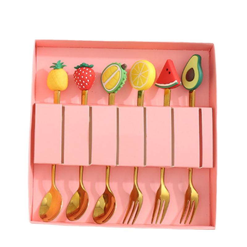 red box fruit series-gold spoon fork mixed 6-piece set
