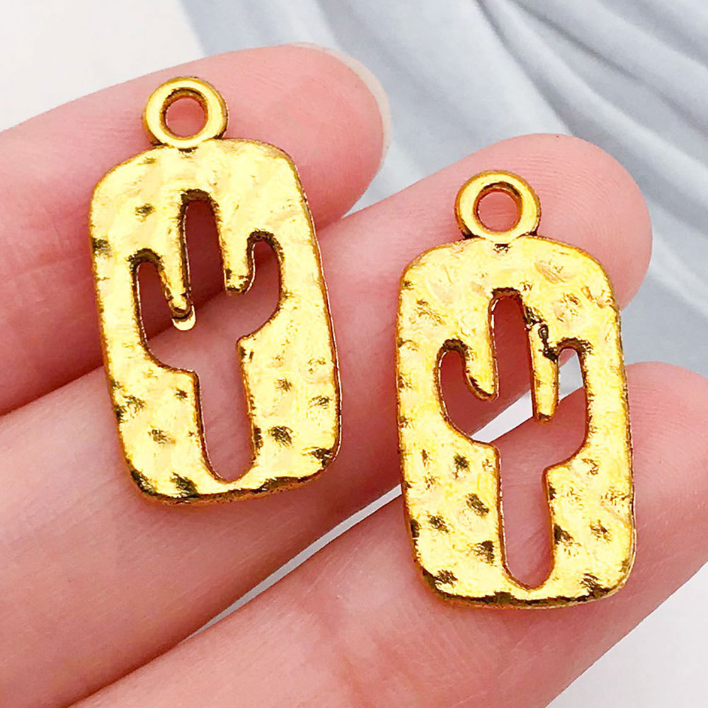 19242-ancient & gold zinc alloy western denim hollow cactus 23x12mm-1.3g