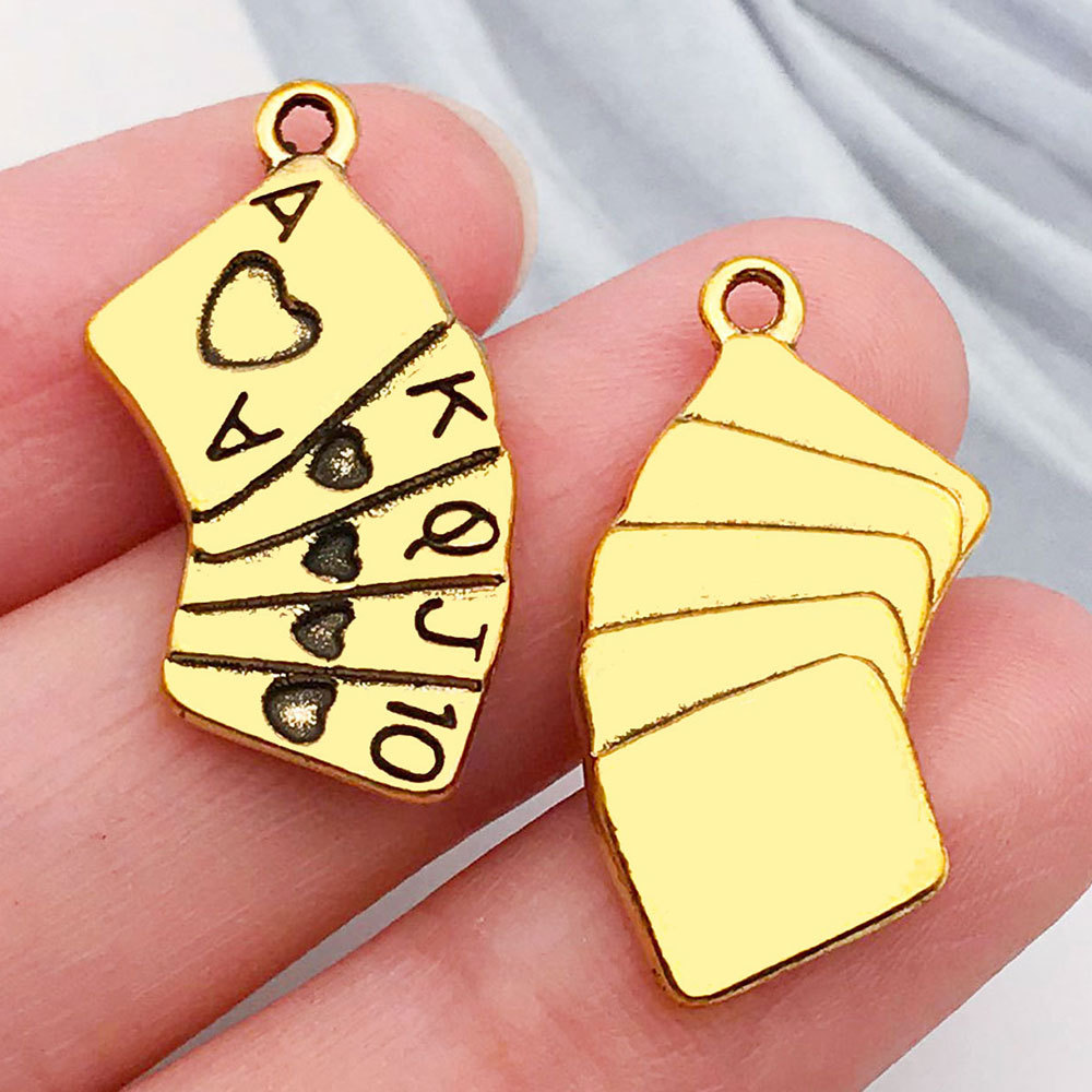 19226-ancient & gold zinc alloy western denim playing cards 13x25mm-2.5g