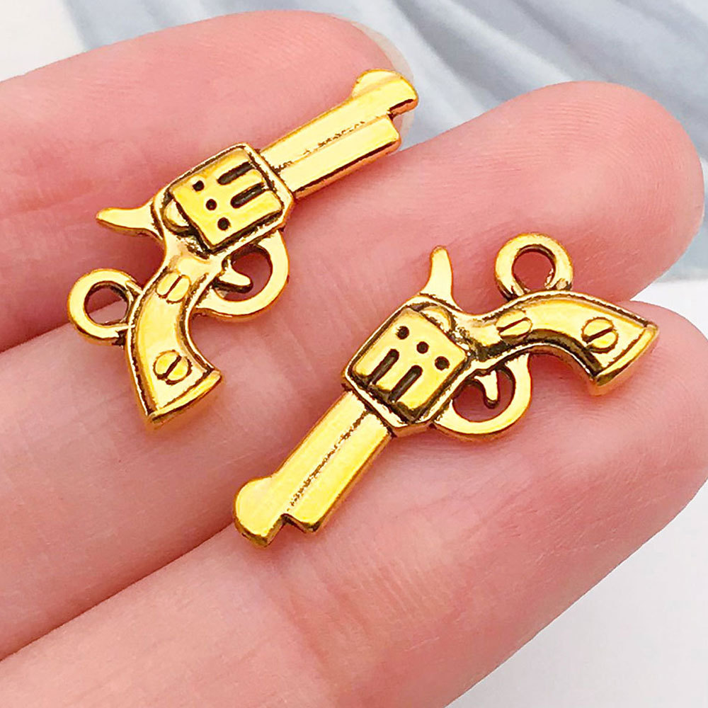 19252-ancient & gold zinc alloy western denim pistol 11x21mm-1.4g