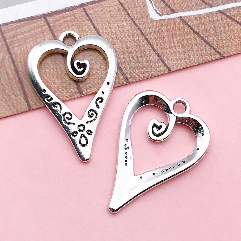 15892-antique silver zinc alloy hollow-out double peach heart-shaped 25x24-1.8g