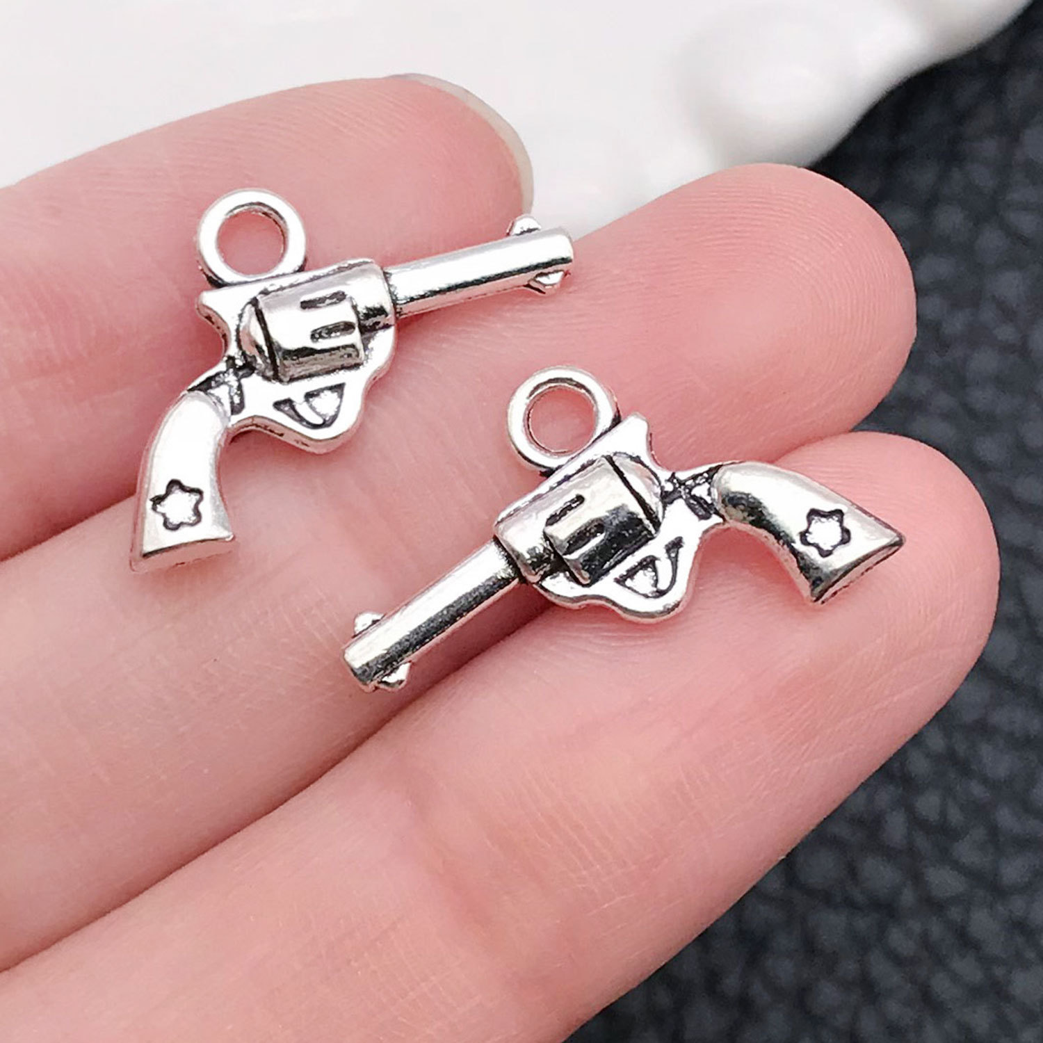 11234-antique silver zinc alloy weapon pistol 20x13-1.2g
