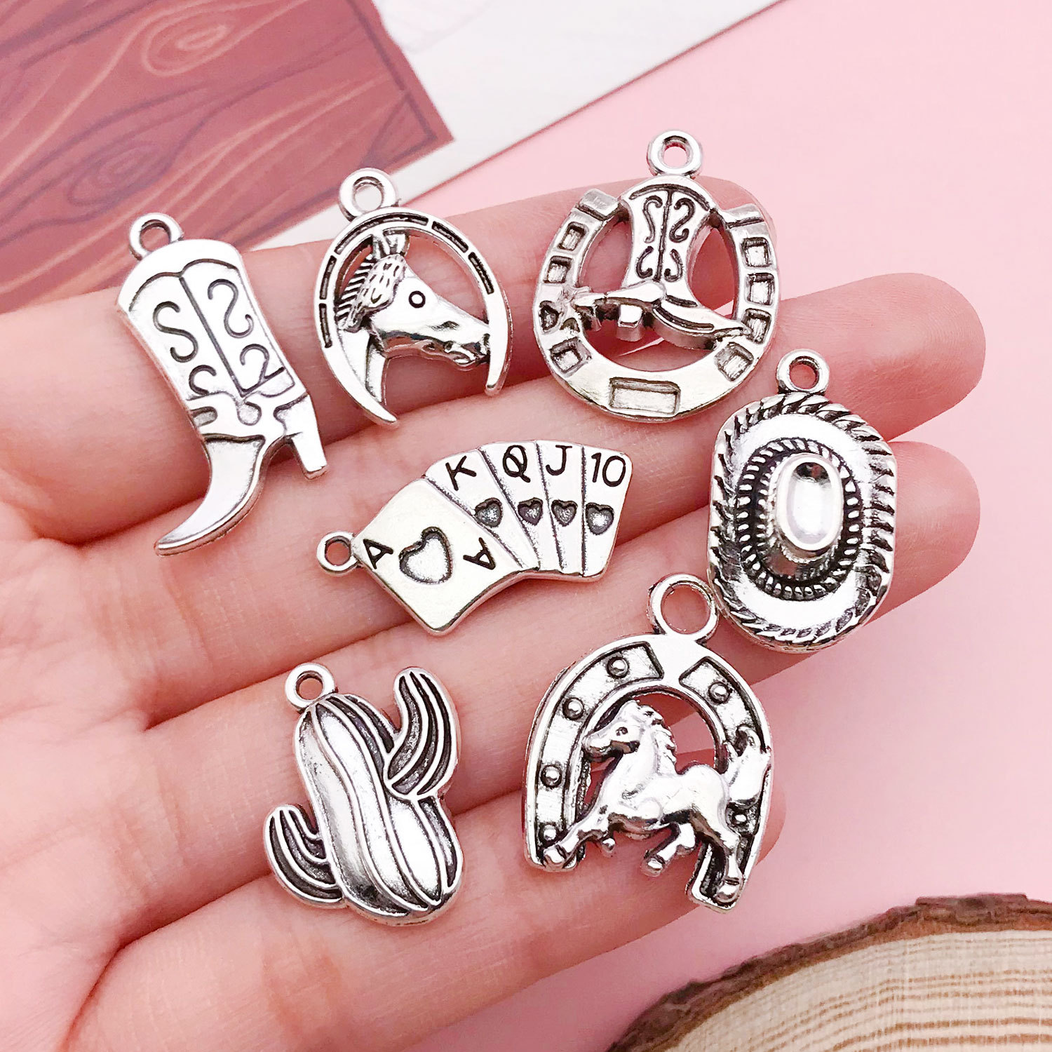 19239-antique silver zinc alloy western denim horseshoe gdddluck17x14mm-1.1g