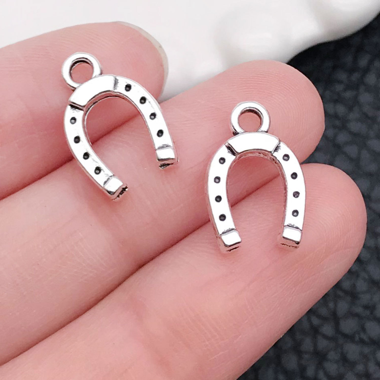 19235-antique silver zinc alloy western denim horseshoe goodluck17x12mm-0.8g