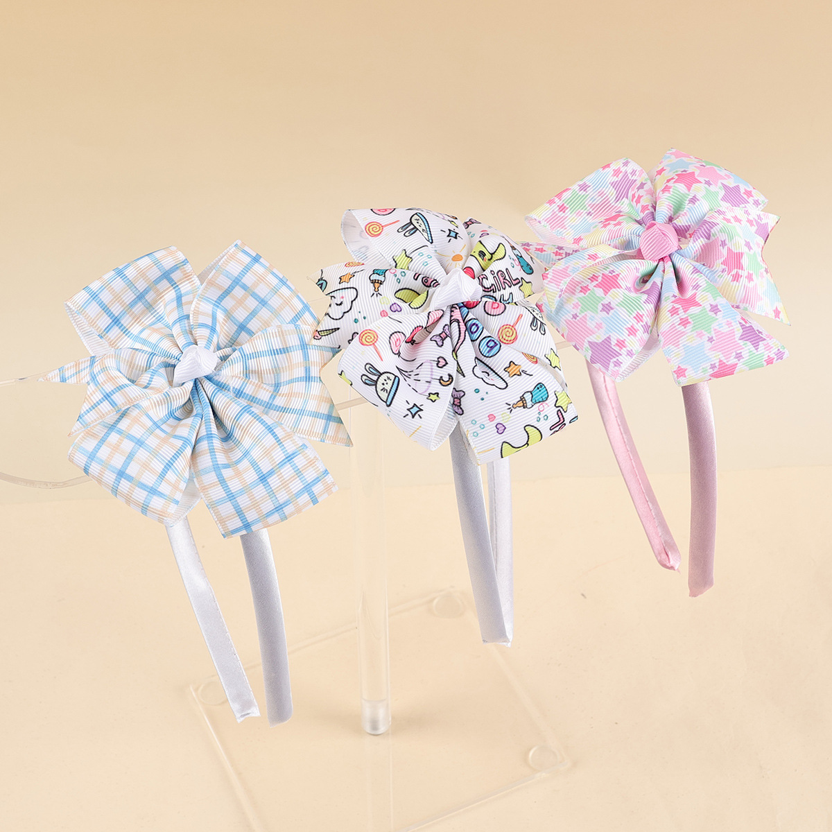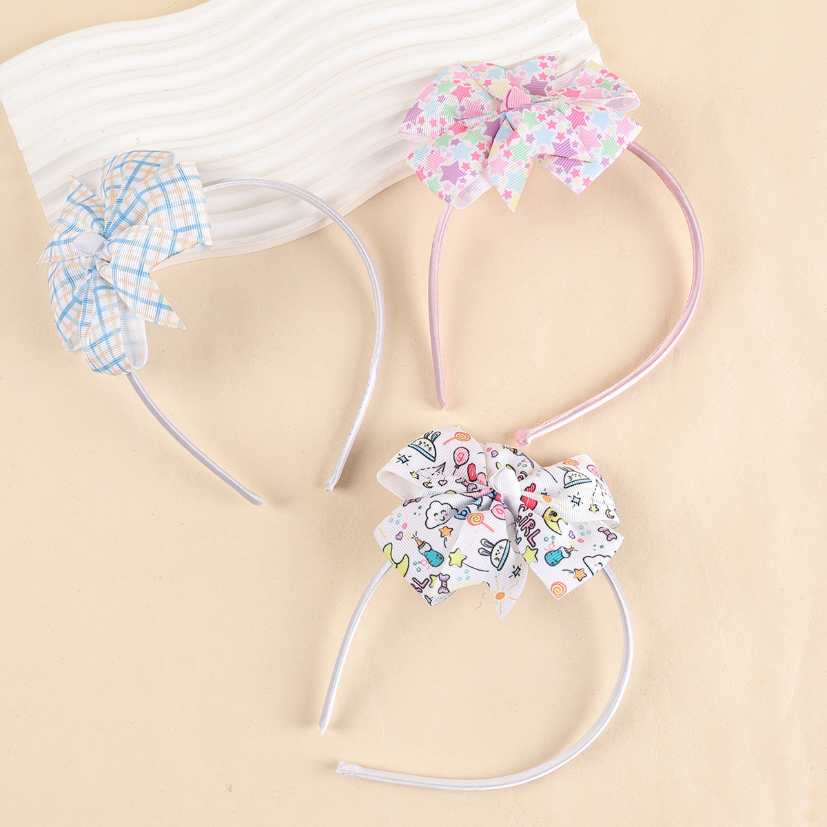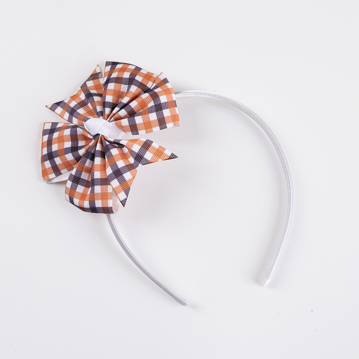cross-border children's bow plaid fabric headband handmade dovetail bow decorative head hoop girls headdress wholesale