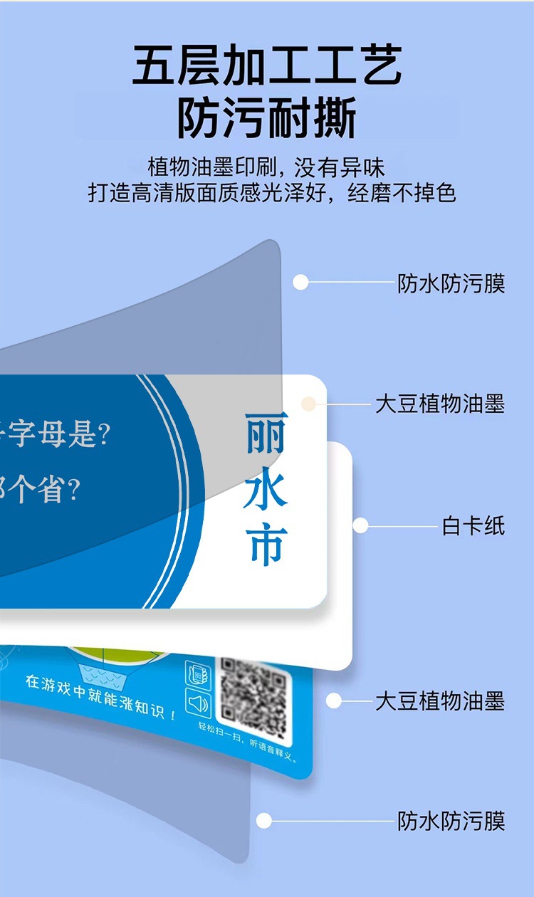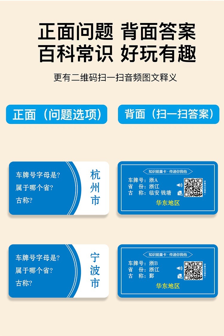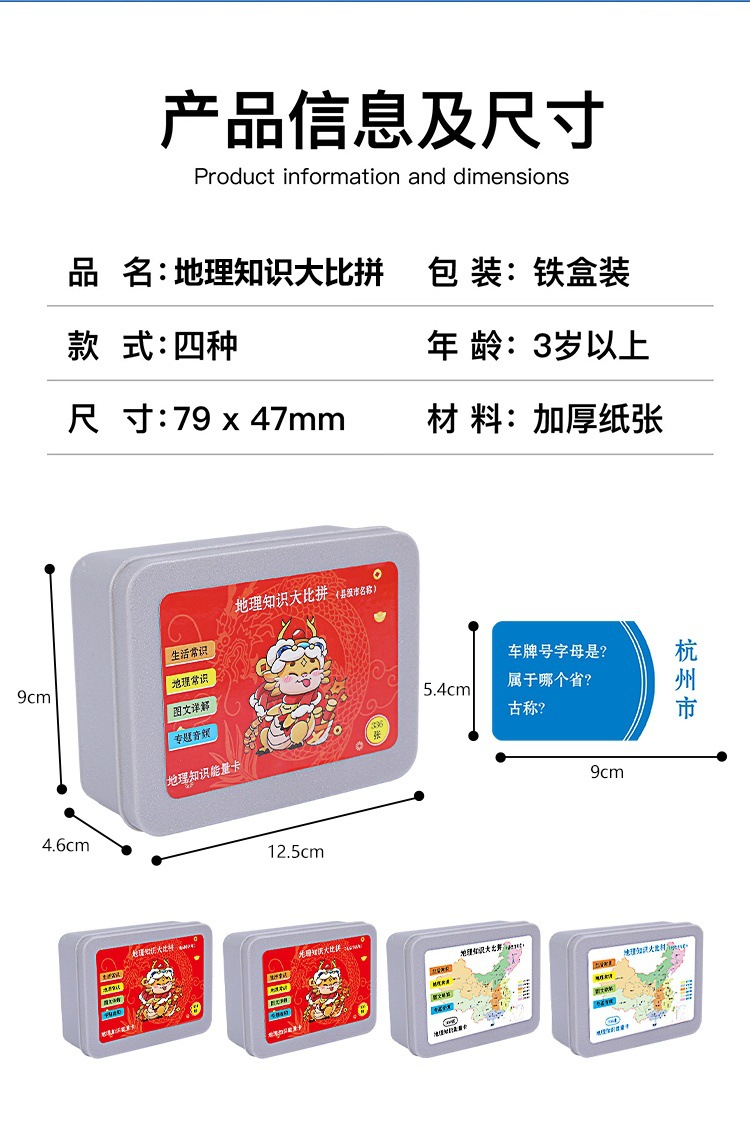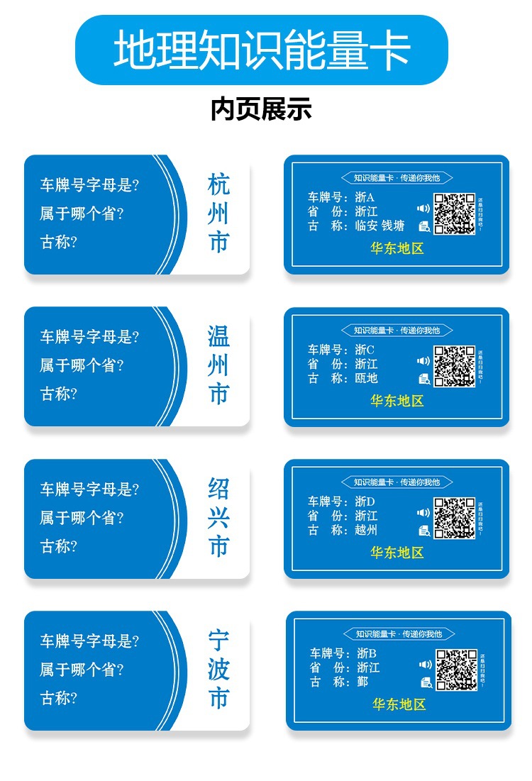 This geographical knowledge energy card is a carefully designed tool for geographical knowledge learning, including the names, locations, and historical developments of all the prefecture-level cities and directly-administered municipalities across the country. This product aims to help children better understand the geographical knowledge of various parts of the motherland, improve their comprehensive quality and cognitive ability.