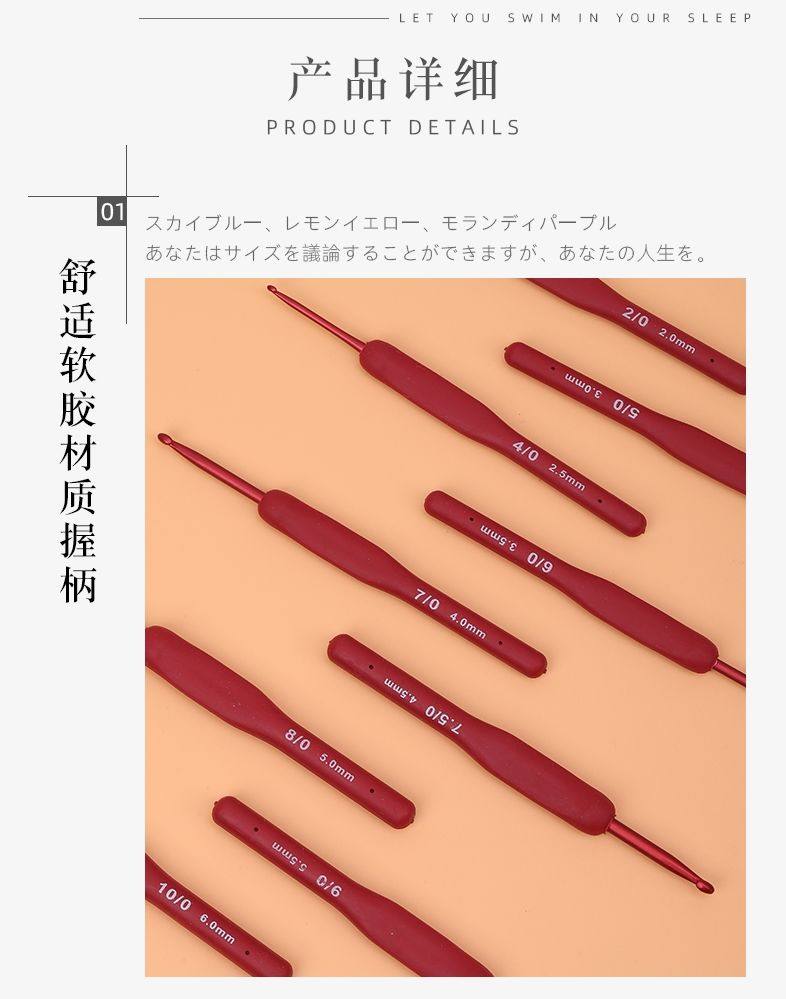 2mm red soft handle crochet hook