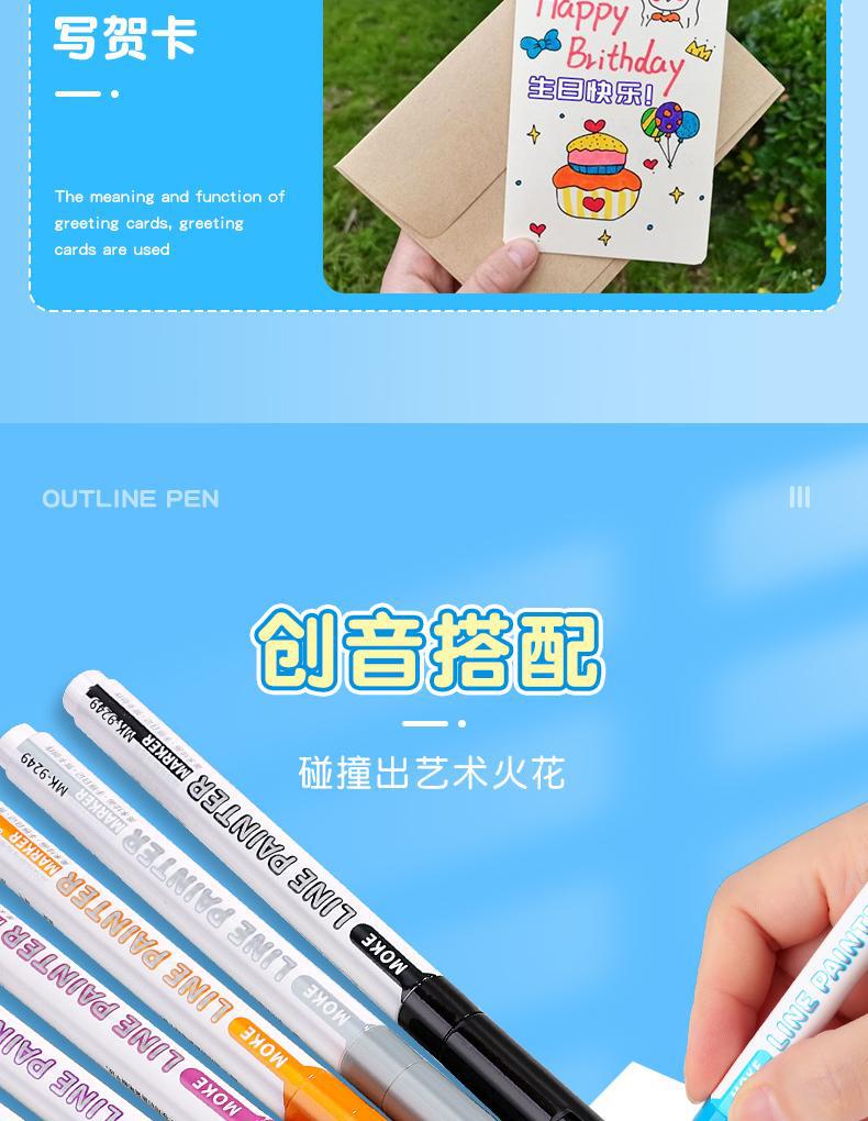 [double line outline pen] 8 colors
