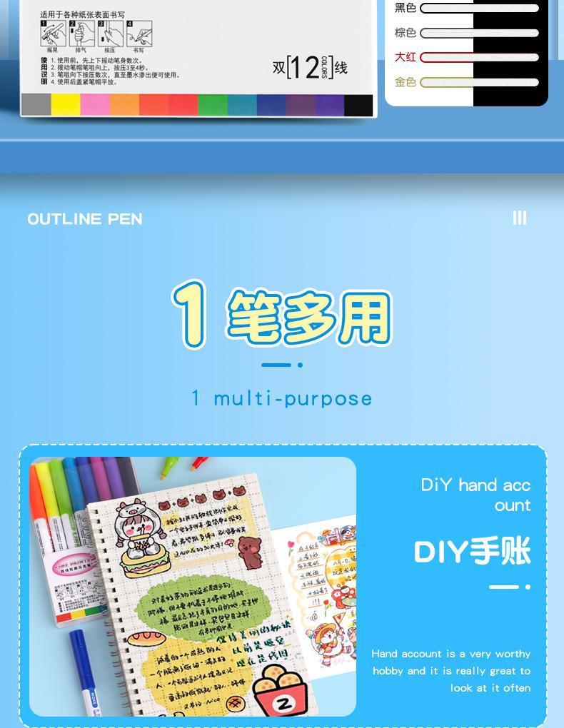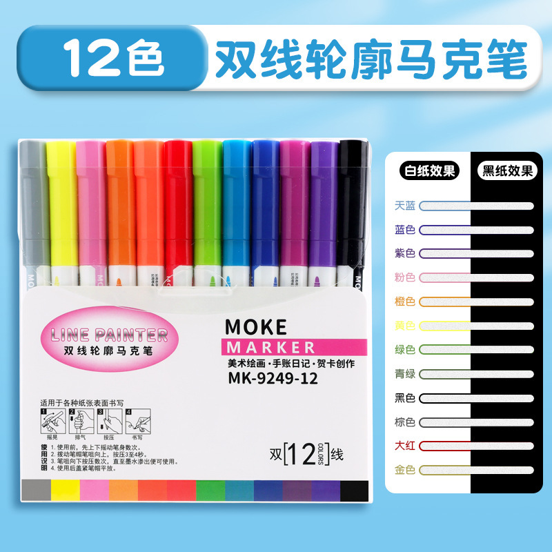 [double line outline pen] 12 colors