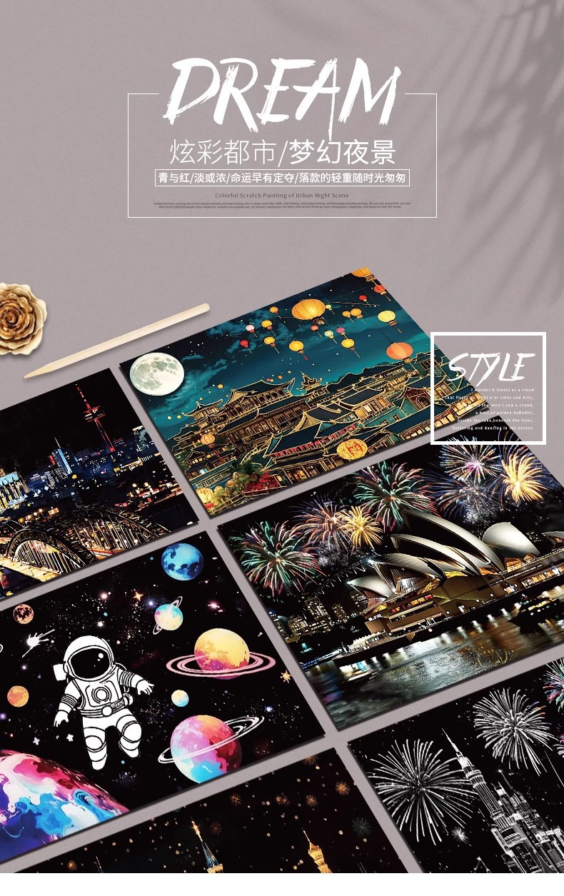 [a 100.00cm-inch 3-piece] dream castle + night city + red square +6-piece set + gift bag