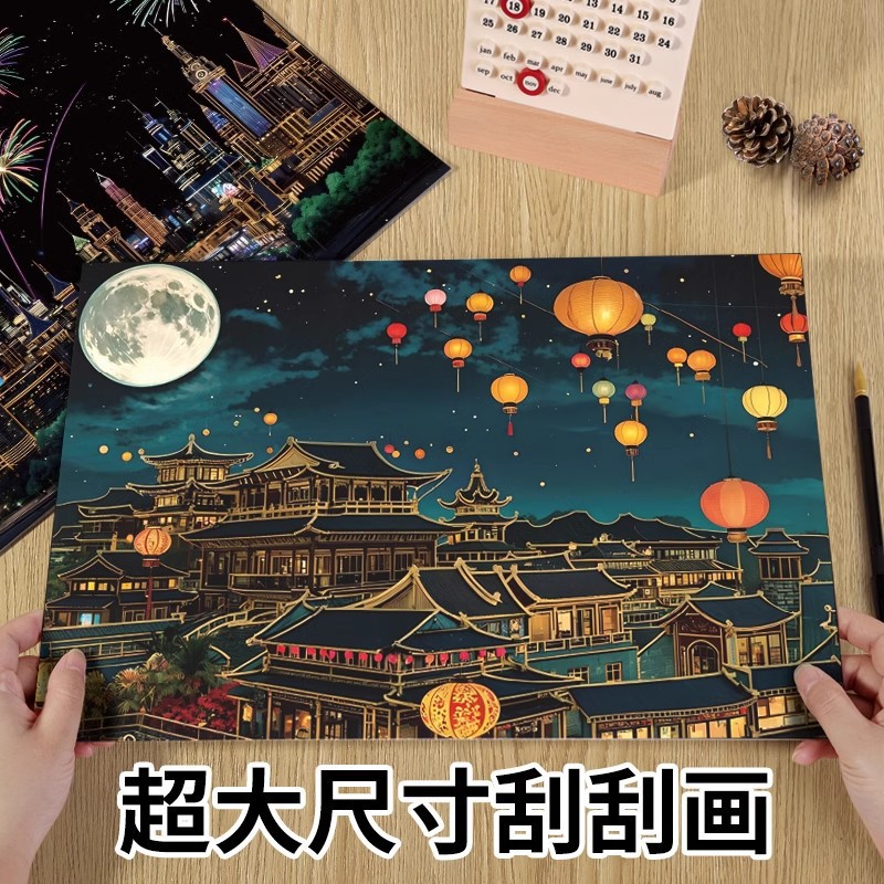 [a3 large size] pure black scratch painting 1 piece + bamboo stick