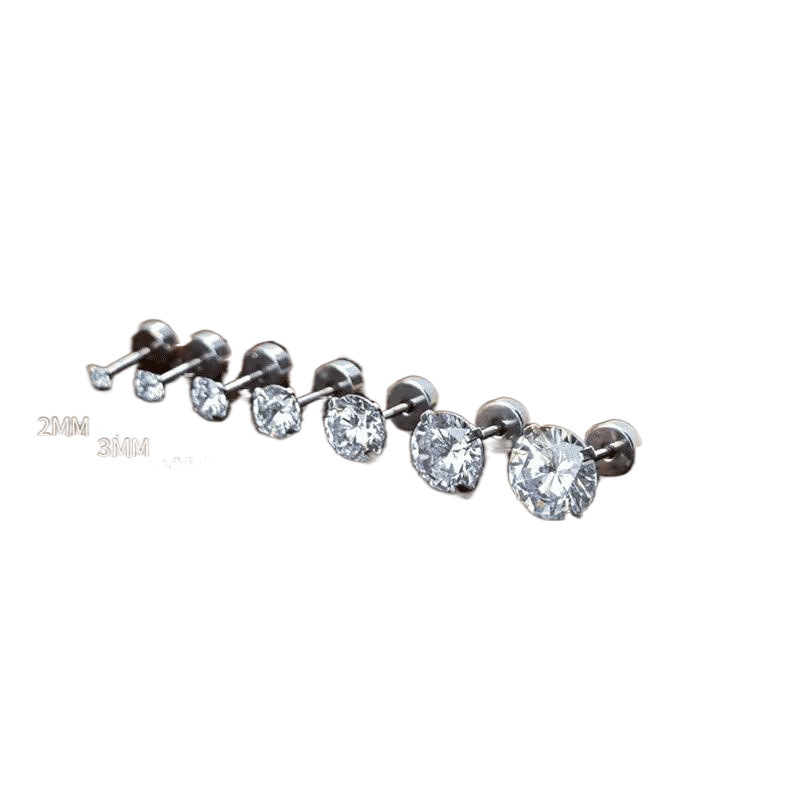 ins super flash zircon flat screw 925 ear bone stud female ear-caring sleeping no need to take off thin needle cochlear ear studs earrings