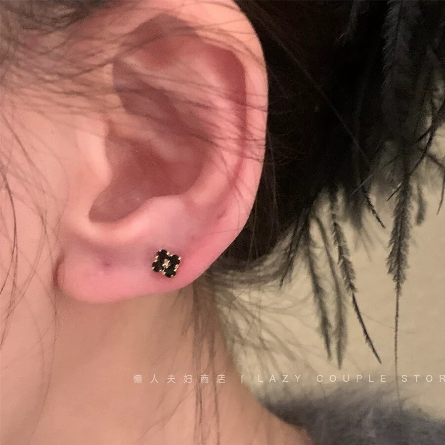 black square diamond ear studs