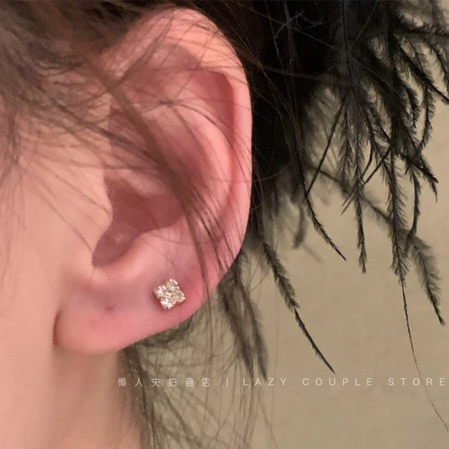 white square diamond ear studs