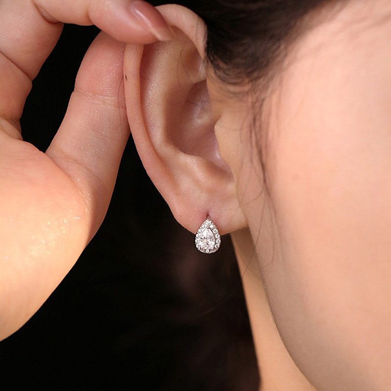 ed-020. rhinestone water drop. ear clip