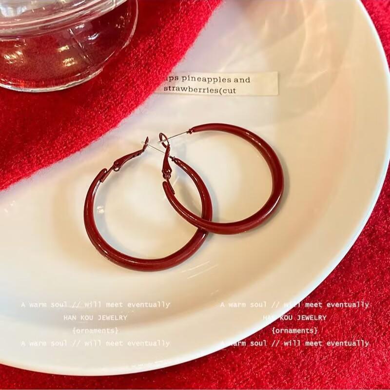 2025 best-selling hong kong style ankela wine red white stud earrings women's retro earrings fashion exaggerated big ear ring