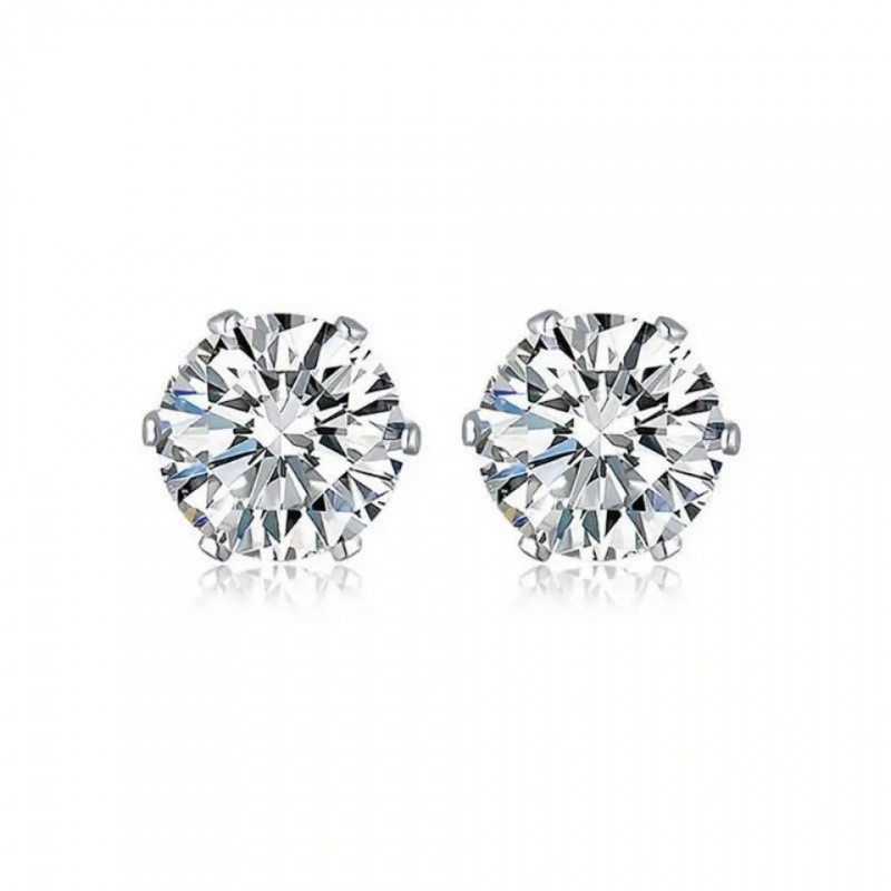 925 silver zircon white diamond ear studs 6mm [1 pair]]