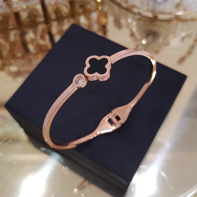 rose gold-black clover bracelet